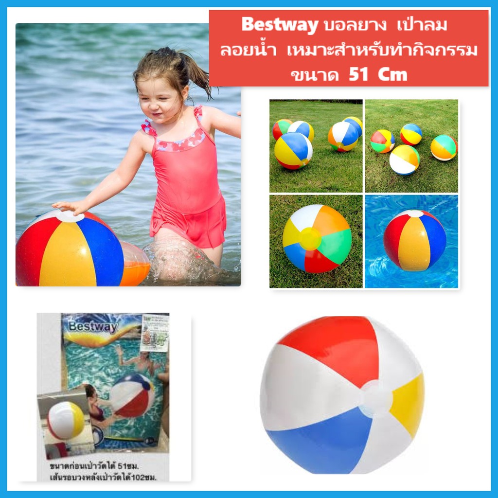 พร้อมส่ง ลูกบอลว่ายน้ำสำหรับเด็ก ลูกบอลเป่าลม เป่าลม ขนาด 61ซม. ถูกมาก