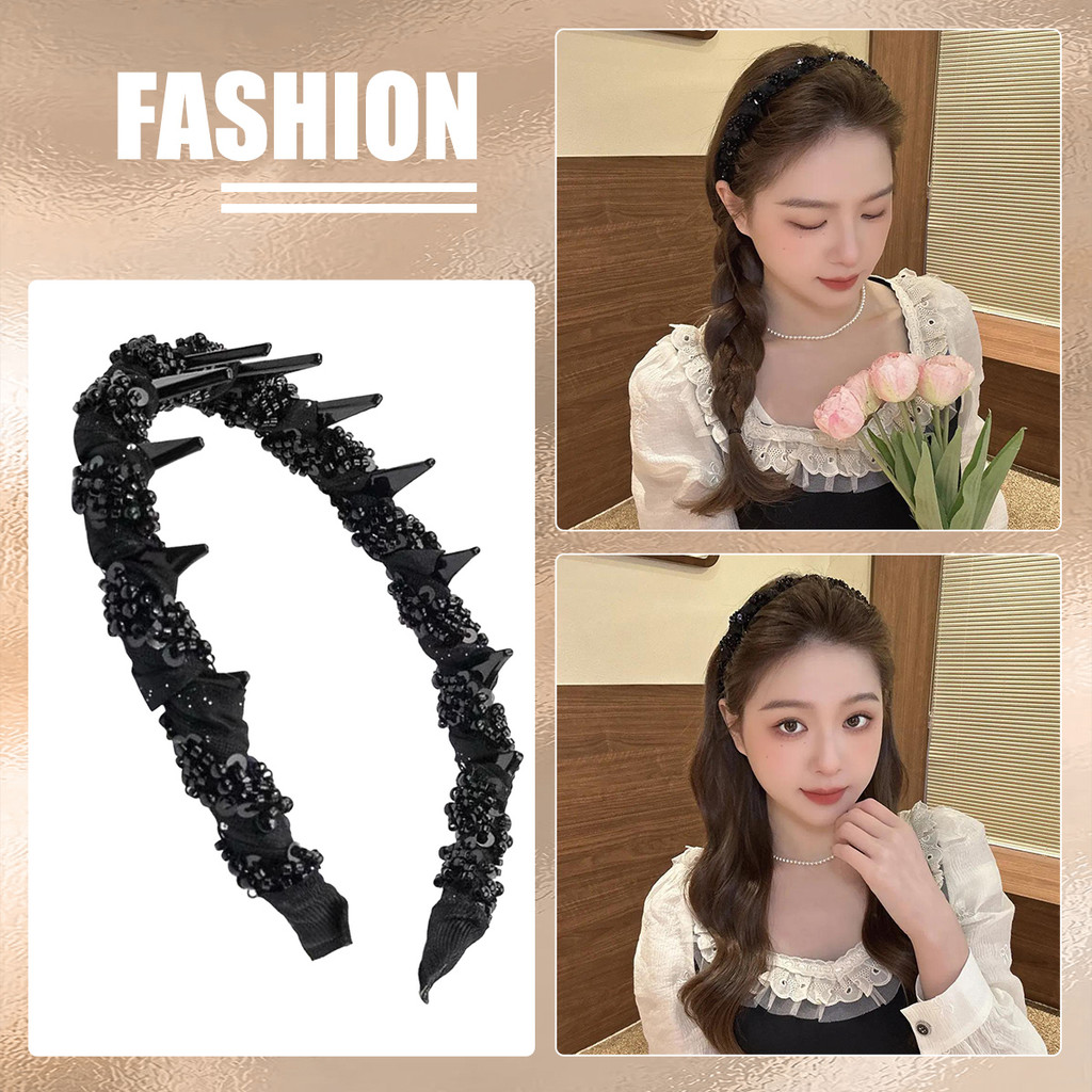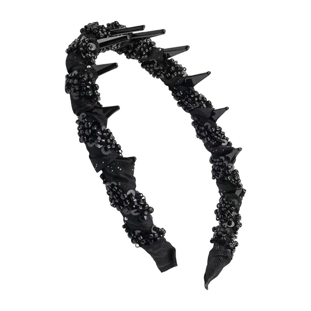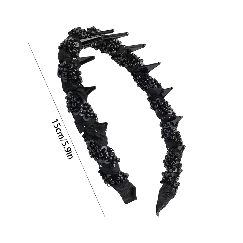 ที่คาดผมสีดำ ออกแบบพิเศษ มีลูกปัดประดับ เหมาะสำหรับคนชอบแฟชันแบบมืดๆ