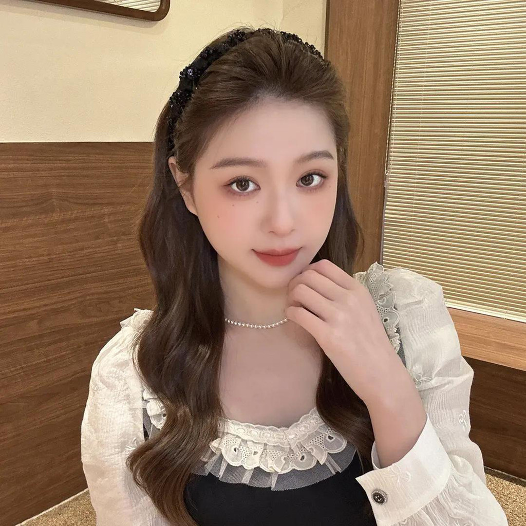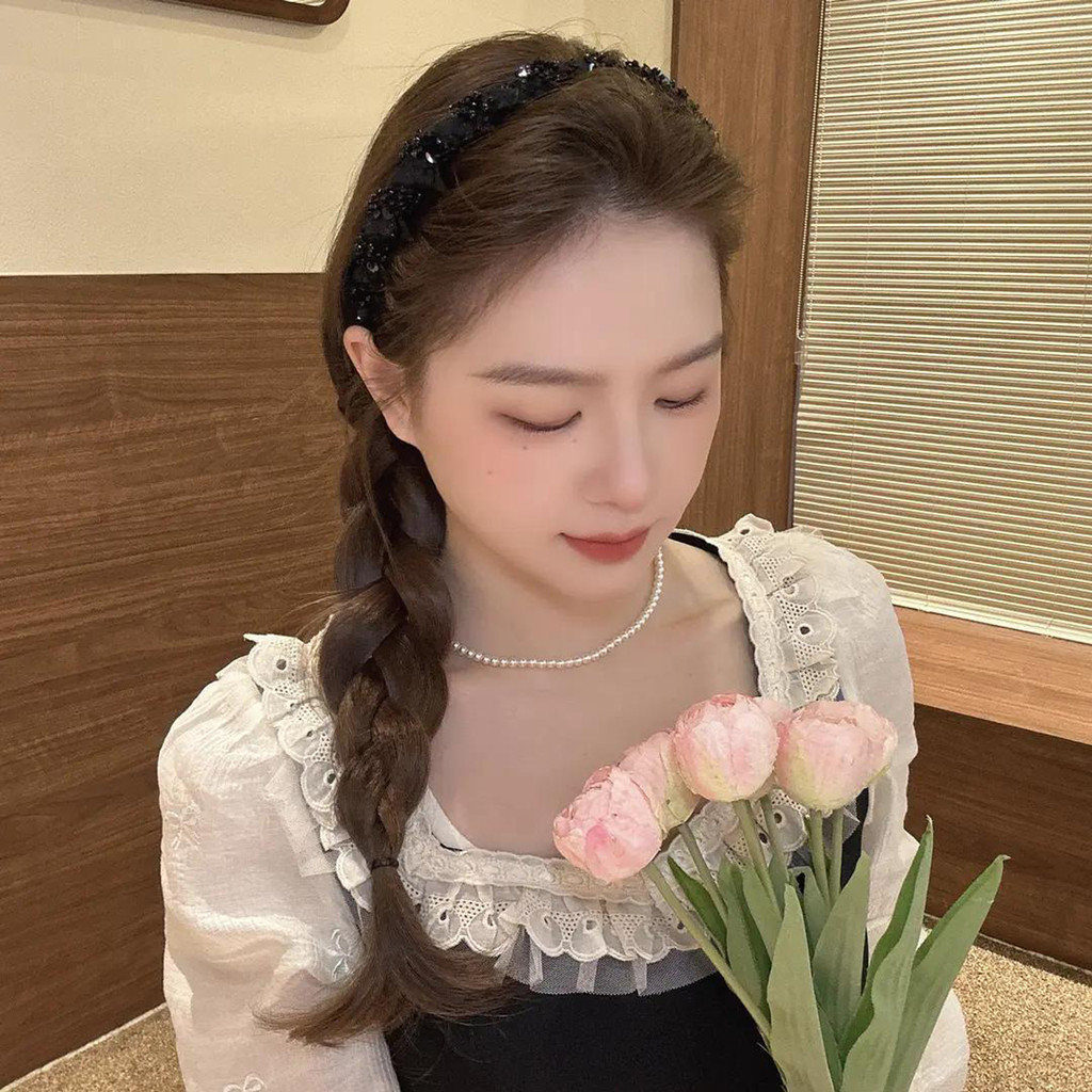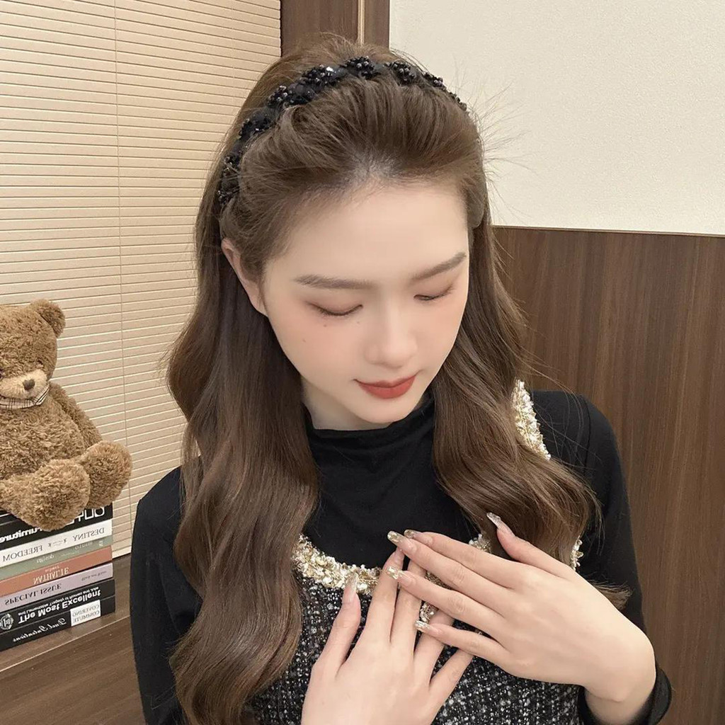 ที่คาดผมสีดำ ออกแบบพิเศษ มีลูกปัดประดับ เหมาะสำหรับคนชอบแฟชันแบบมืดๆ