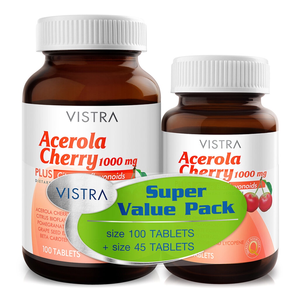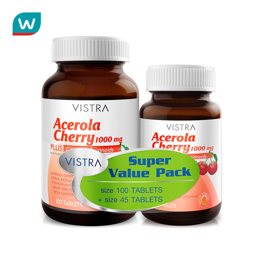 Vistra Vistra Aecerola Cherry วิสทร้า อะเซโรลา เชอร์รี แพ็ค (100 เม็ด +45 เม็ด)