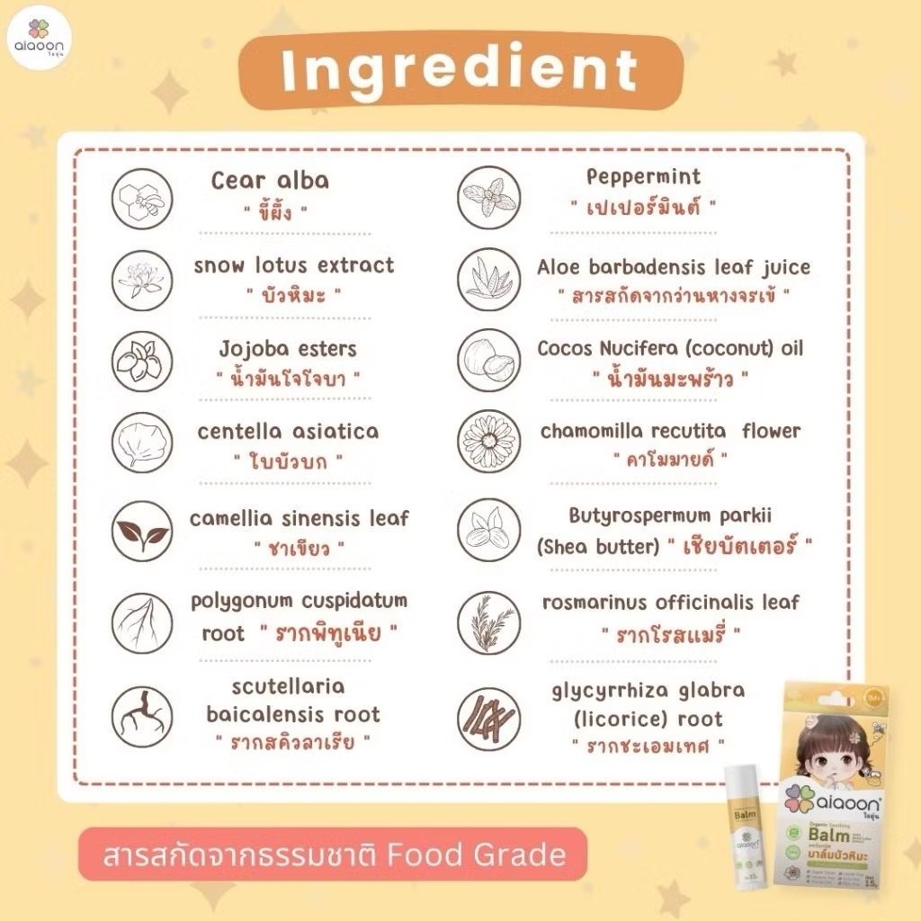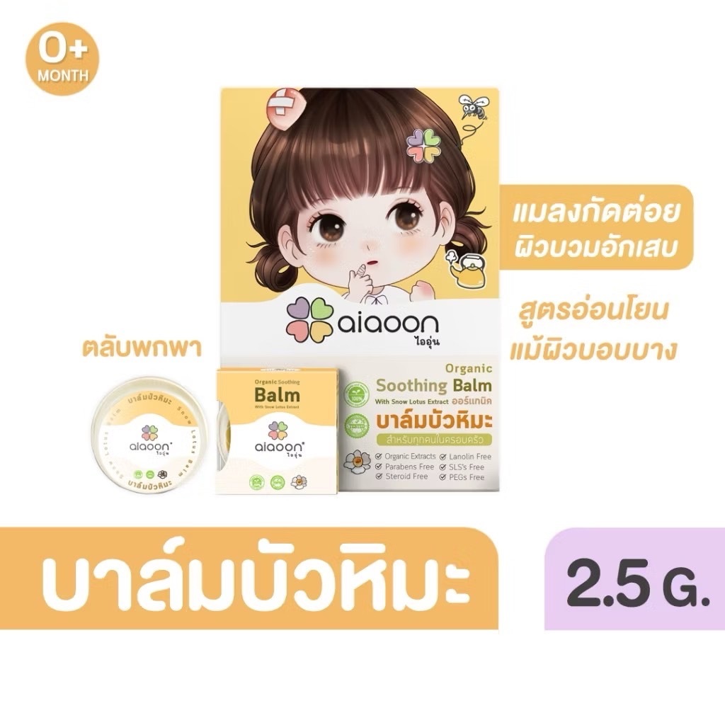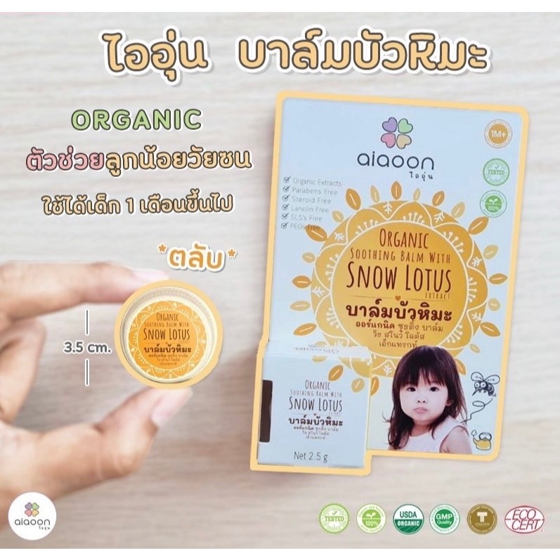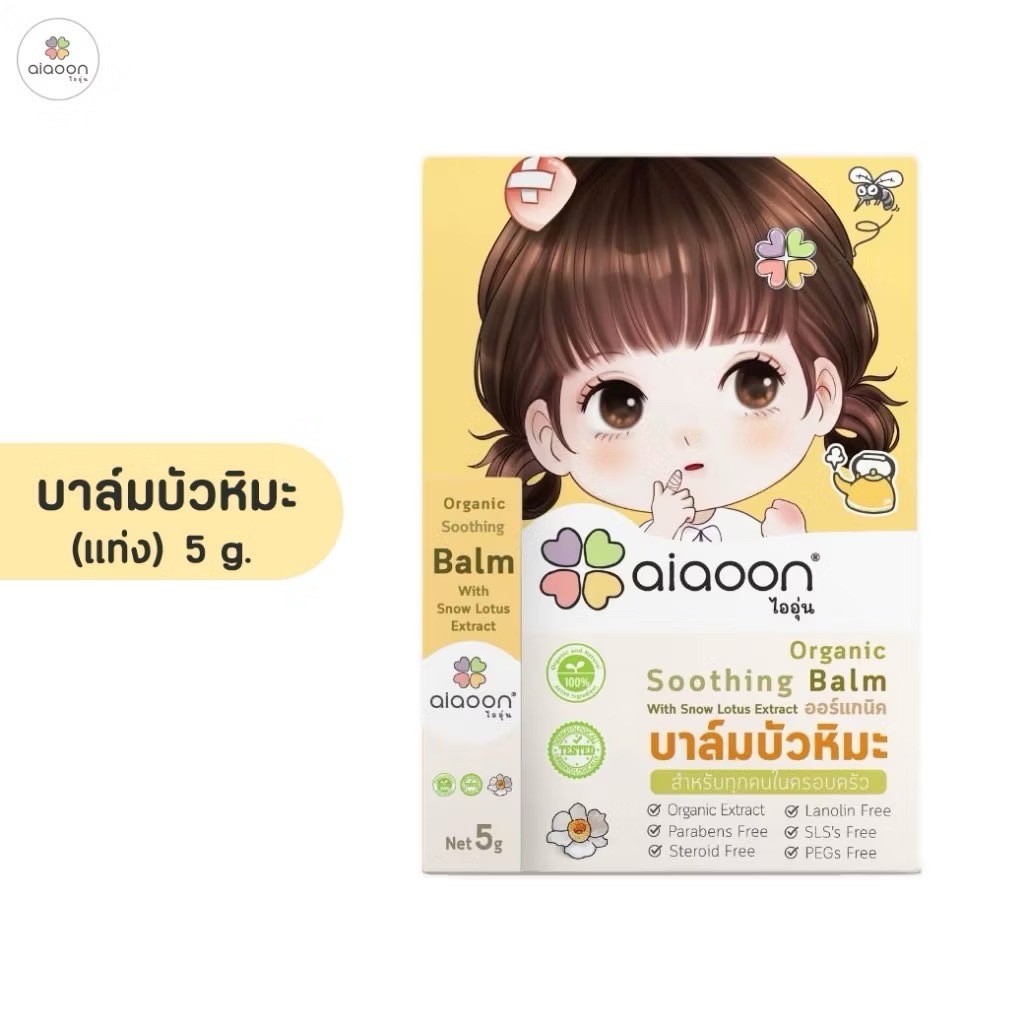 ไออุ่น บาล์มบัวหิมะ ออร์แกนิค สำหรับเด็ก ใช้ทาแผลหกล้ม ฟกช้ำ ยุงกัด น้ำร้อนลวก ผดผื่น แผลหายไว ไม่ทิ้งรอยดำ Aiaoon