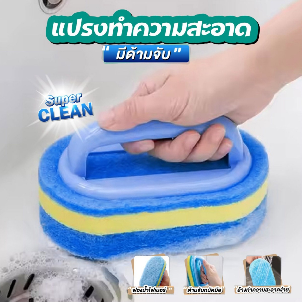 แปรงทำความสะอาดมีด้ามจับ แปรงขัดคราบหนัก สีทูโทน