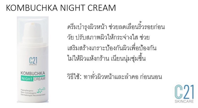 C21 Kombuchka Night Cream 15 ml. ครีมลดเรือนริ้วรอยปรับสภาพผิวขาว ก่อนนอน คอมบูชา คอมบุชา kombucha Cream