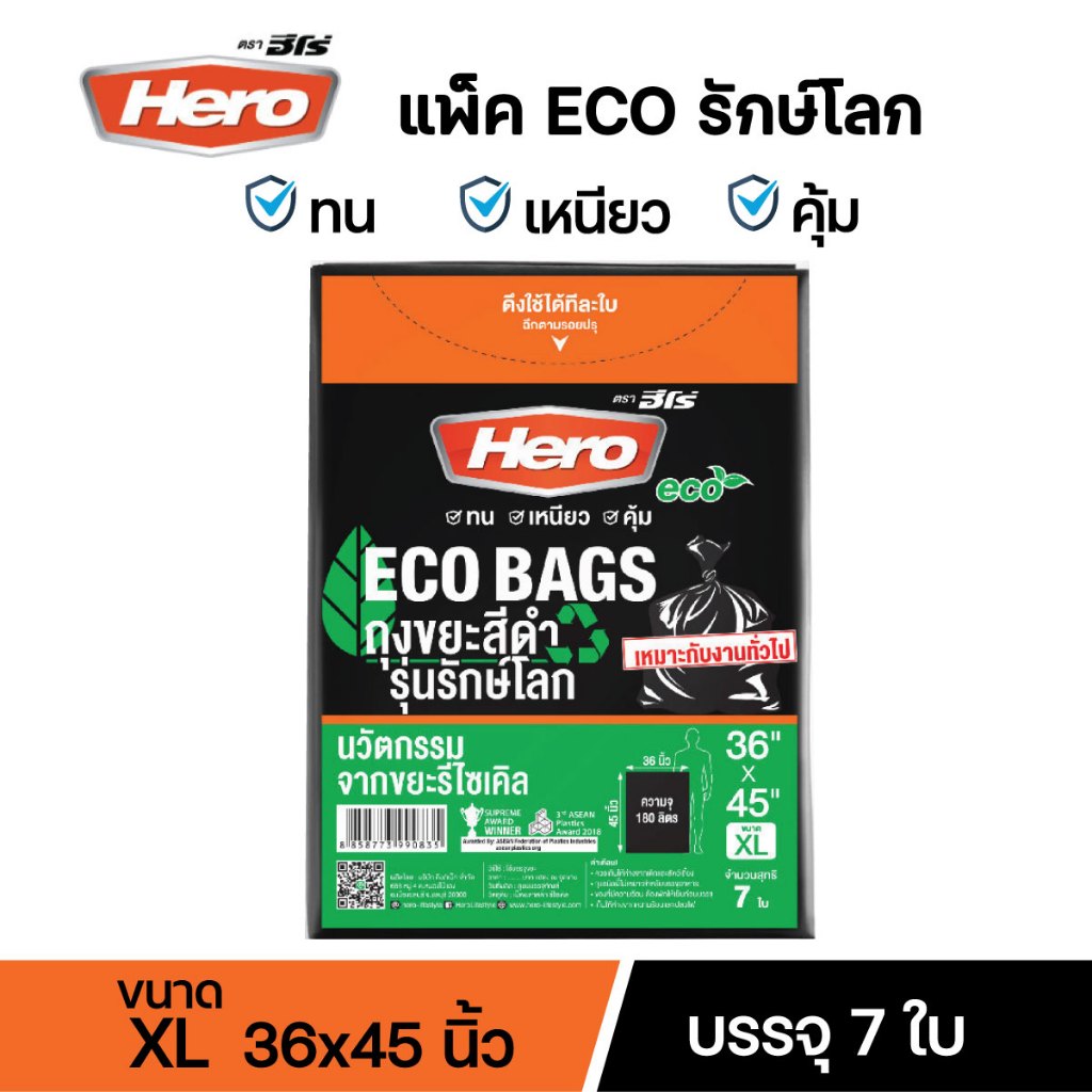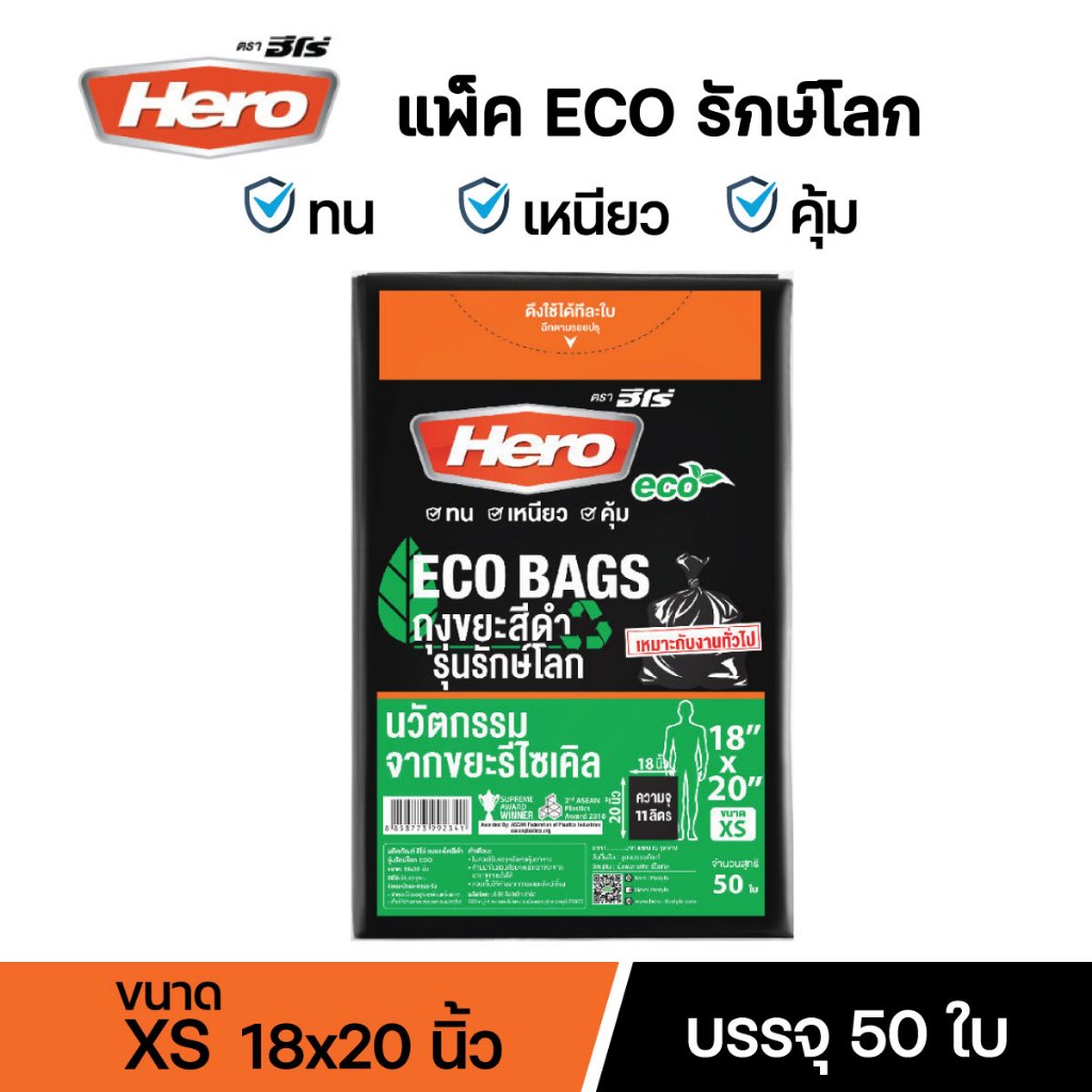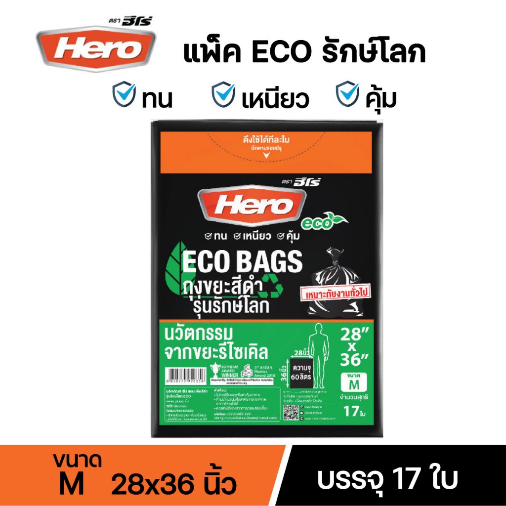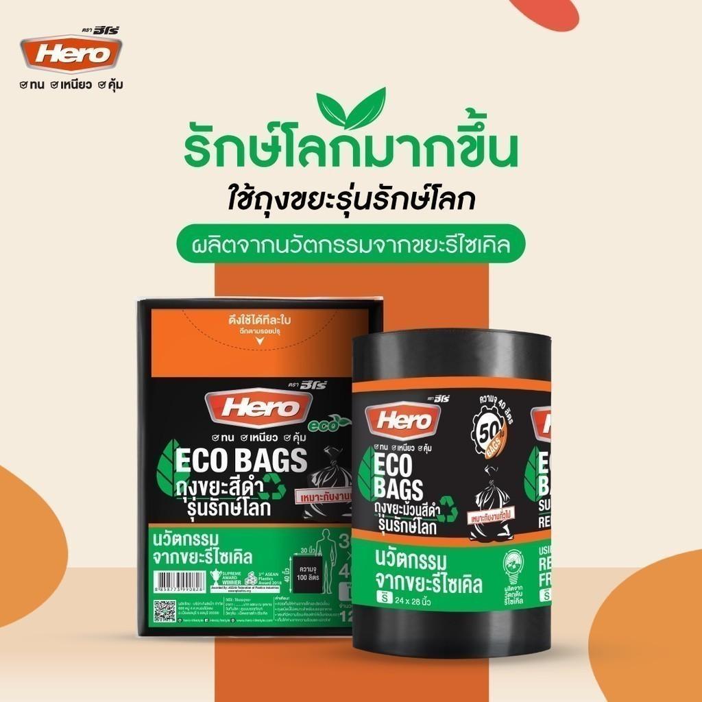 ถุงขยะแพ็คสีดำฮีโร่ Hero รักษ์โลก ECO BAGS หนา เหนียว ทนต่อการฉีกขาด มีหลายขนาดให้เลือก
