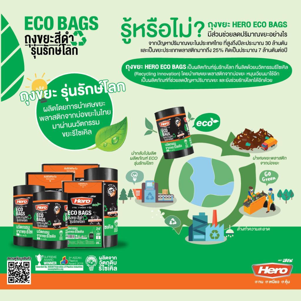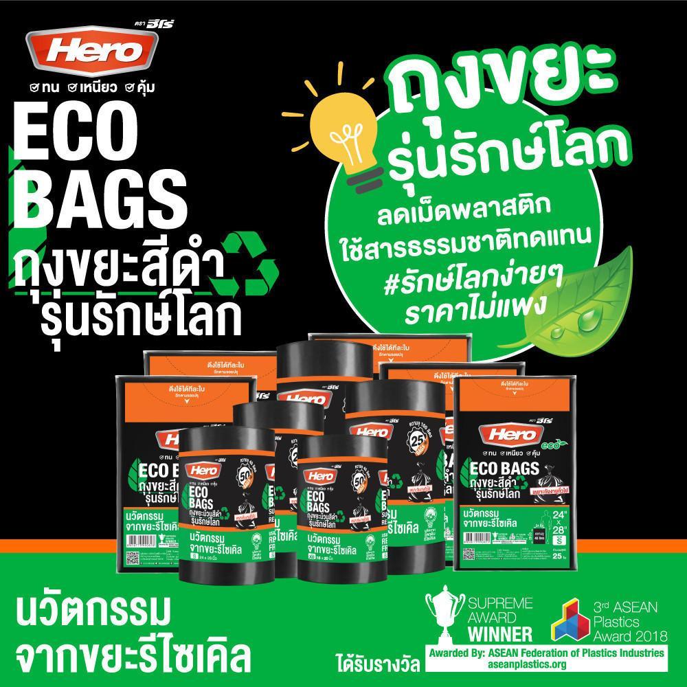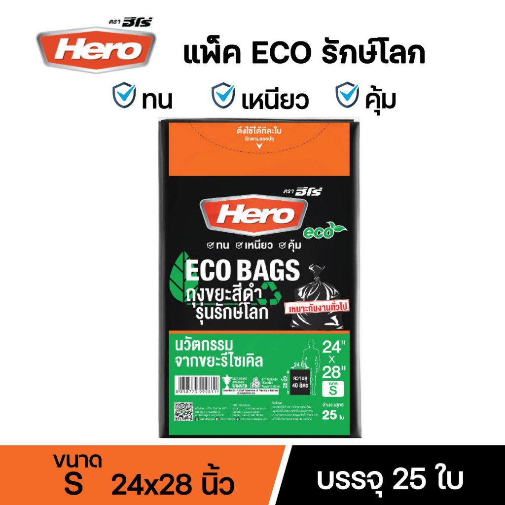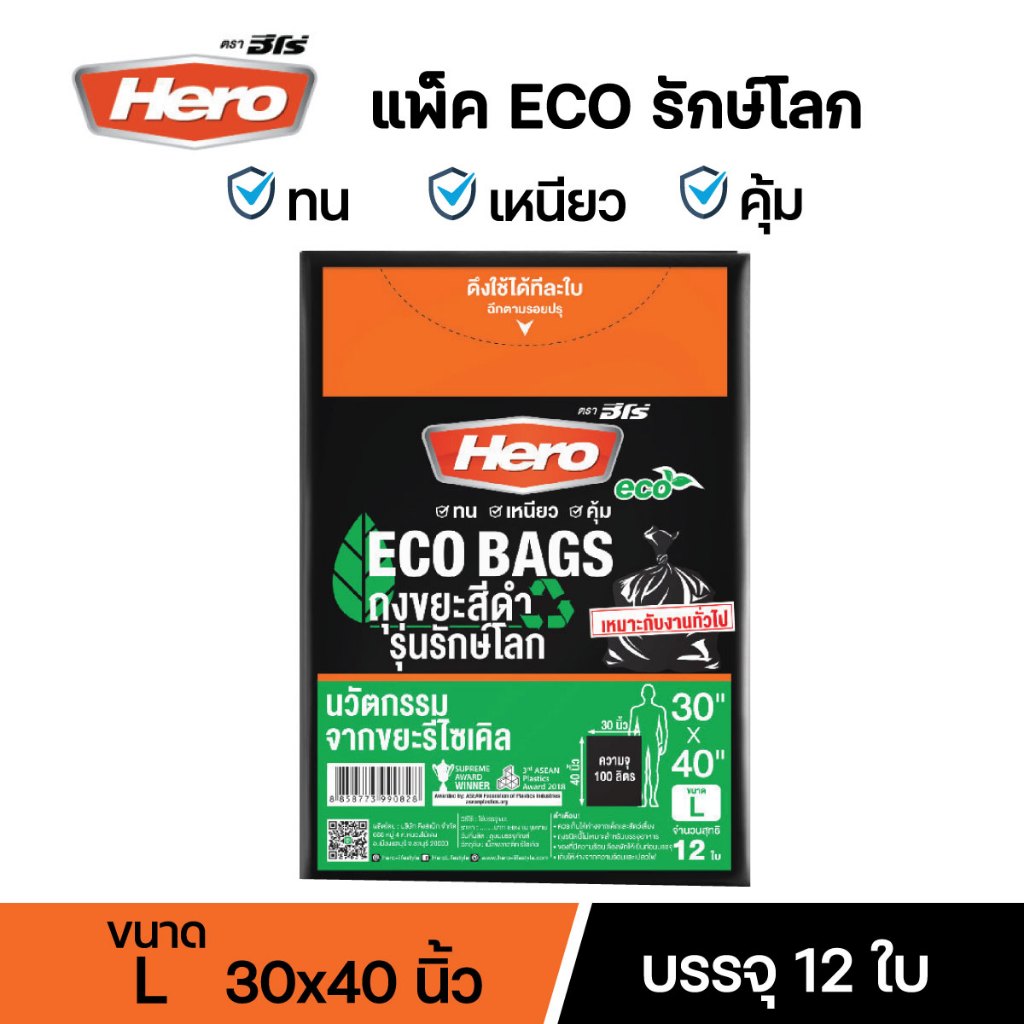 ถุงขยะแพ็คสีดำฮีโร่ Hero รักษ์โลก ECO BAGS หนา เหนียว ทนต่อการฉีกขาด มีหลายขนาดให้เลือก