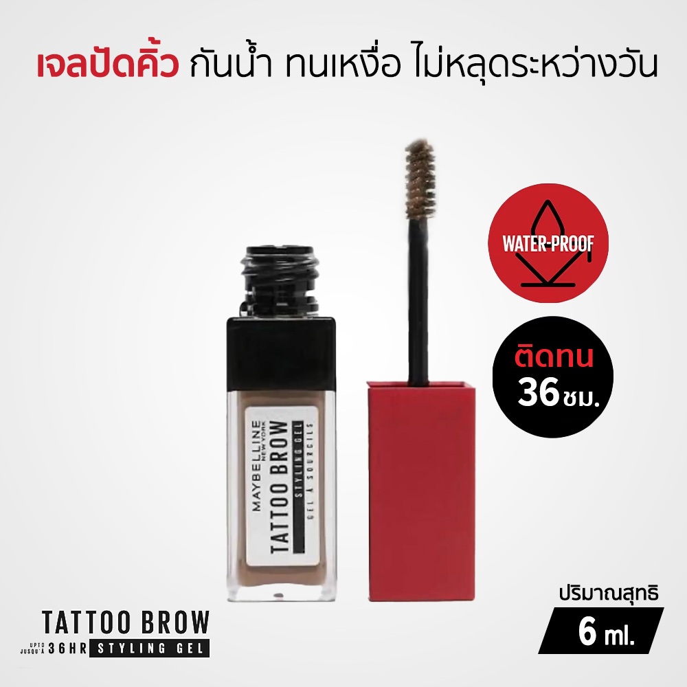 Maybelline Tattoo Brow 3D Gel เจลปัดคิ้ว ติดทนนาน 36 ชม. กันน้ำ ทนเหงื่อ 6ml.