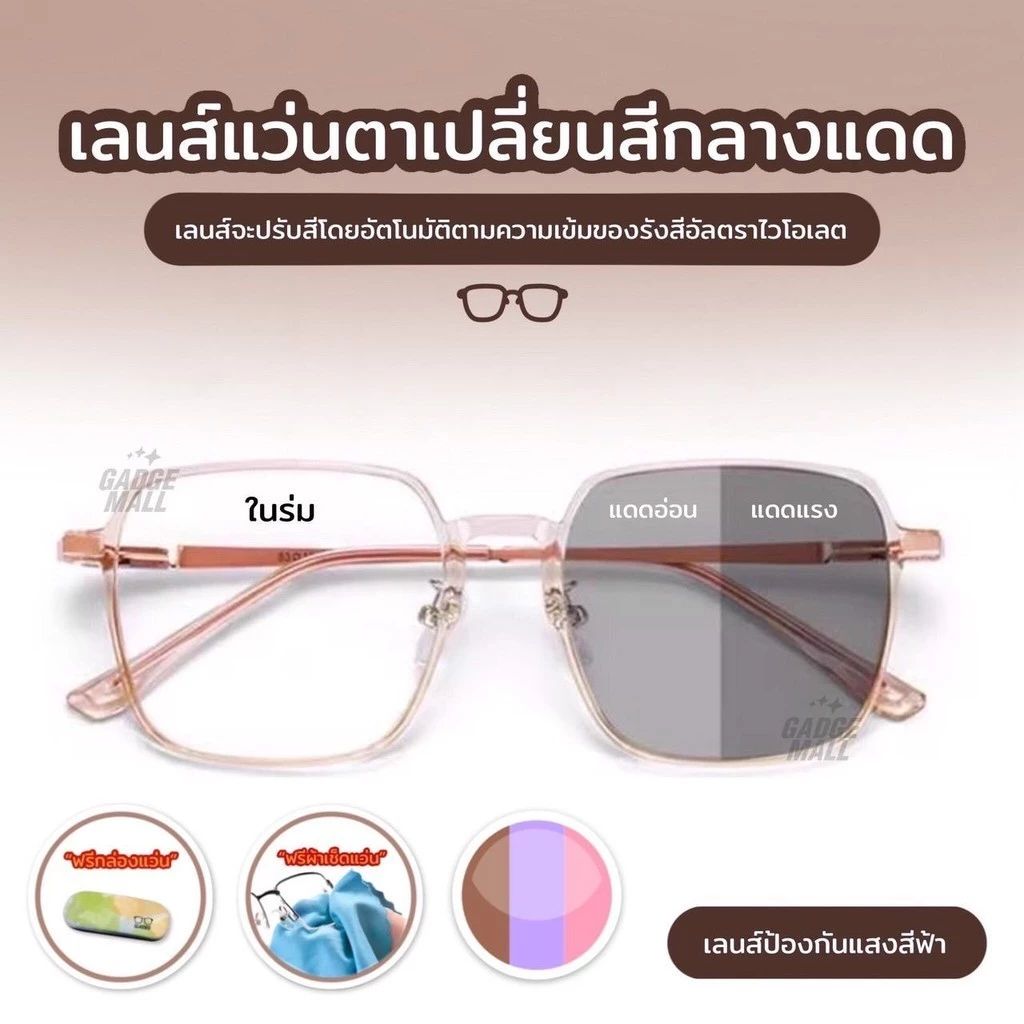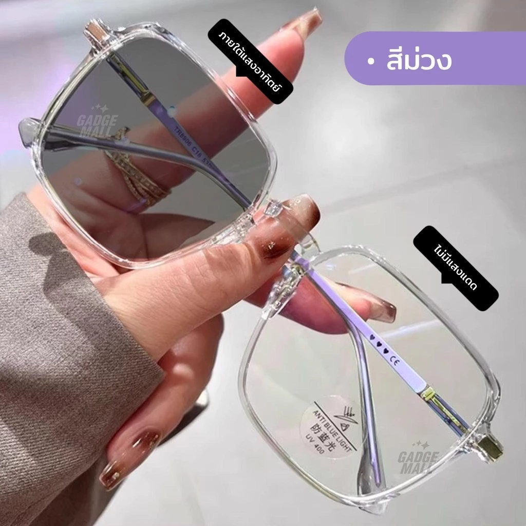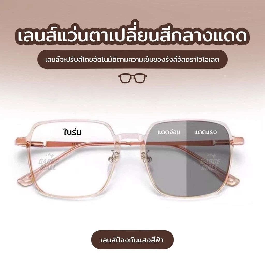 แว่นสายตากรองแสงเลนส์ออโต้เมติก เปลี่ยนสีอัตโนมัติเมื่อออกแดด กันรังสี UV 400