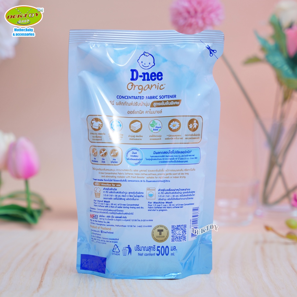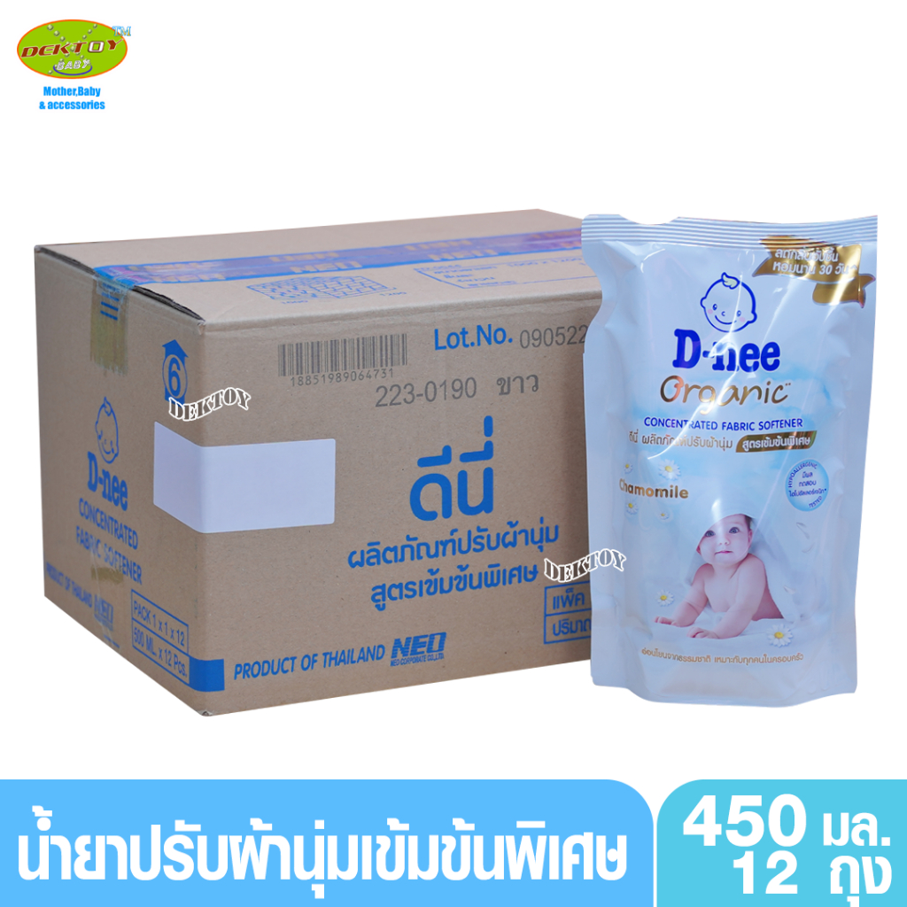 12 ถุงยกลัง ดีนี่ น้ำยาปรับผ้านุ่มสูตรเข ้มข้นพิเศษ ออร์แกนิค คาโมมายล์ สีขาว 450 มล.