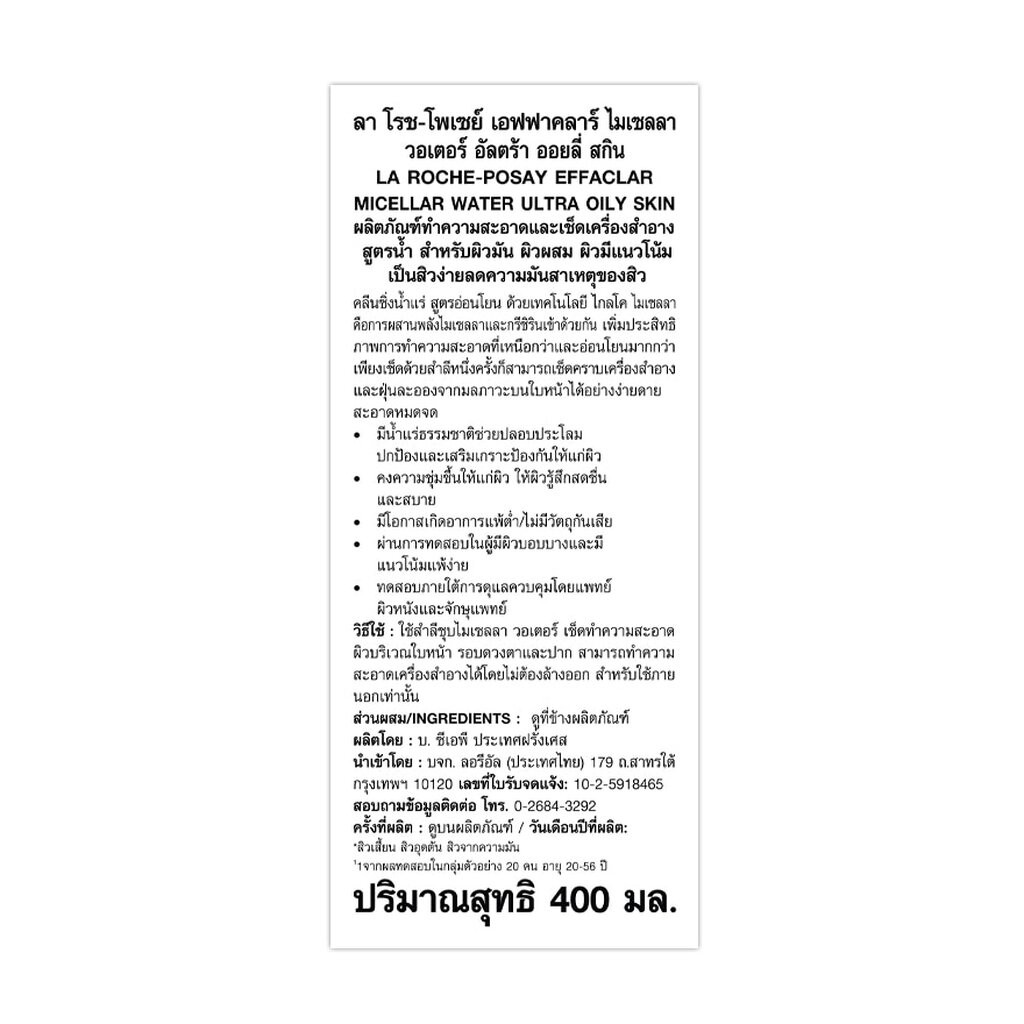 Laroche-Posay ลาโรช-โพเซย์ เอฟฟาคลาร์ ไมเซลลาวอเตอร์ อัลตร้า400 มล.