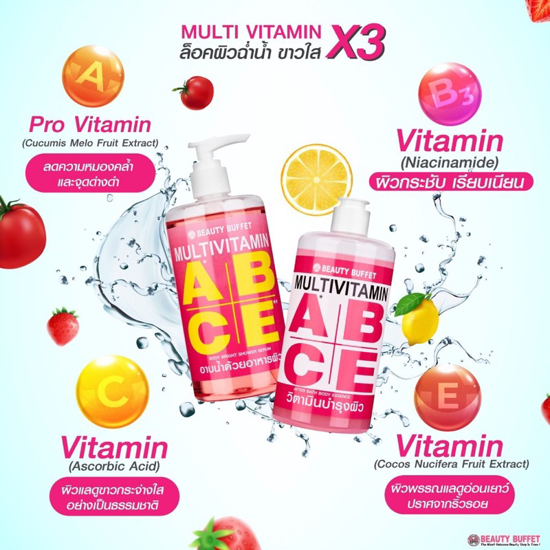 Beauty Buffet Multivitamin Body Bright Shower Serum + Multivitamin After Bath Body Essence มัลติวิตามีน เจลอาบน้