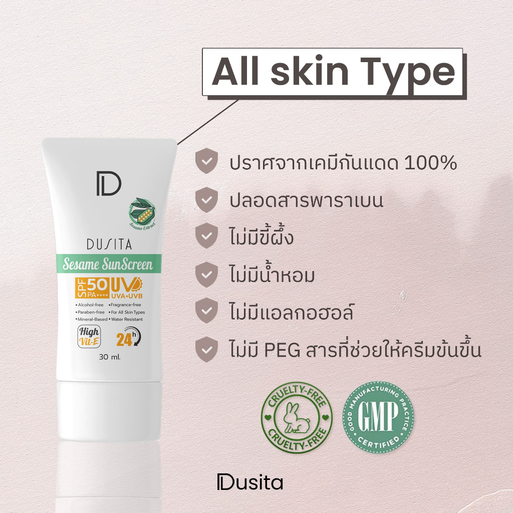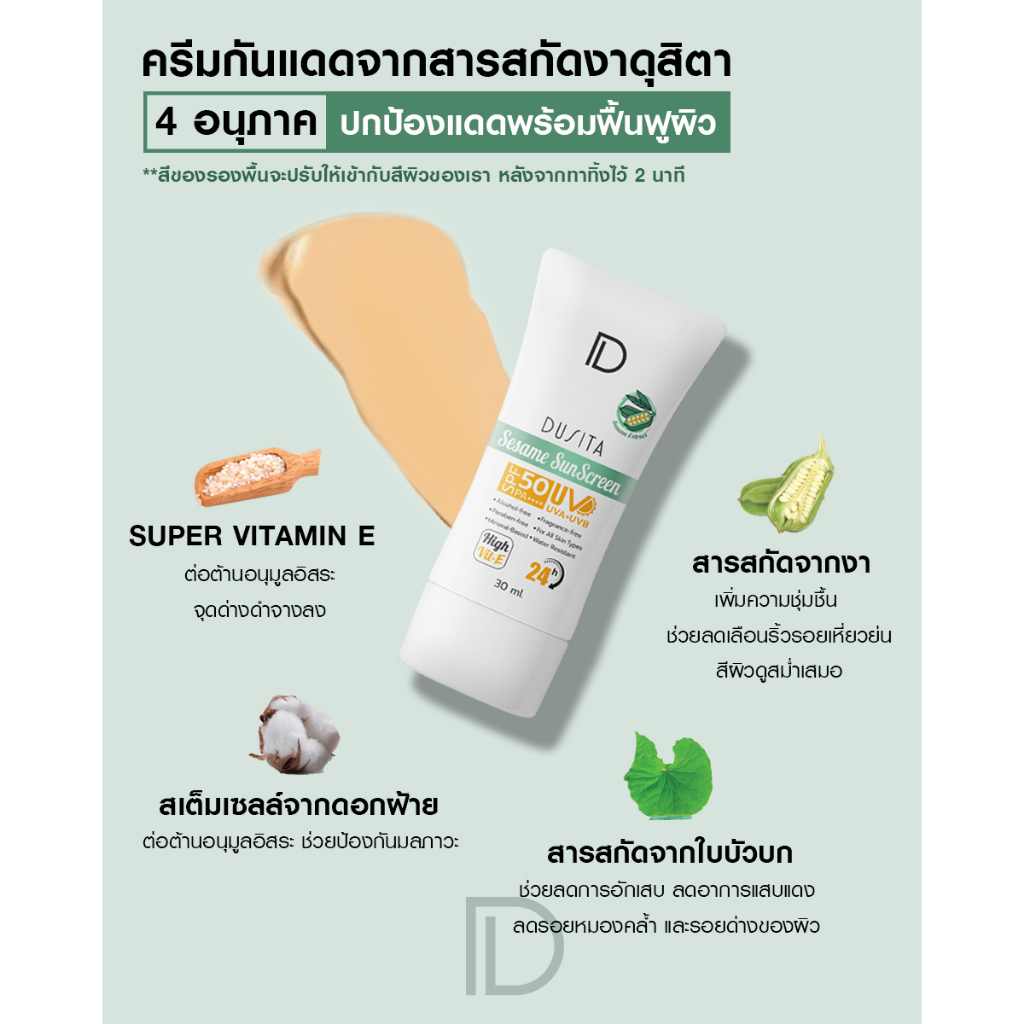 Dusita ดุสิตา เซสซะมี ซันสกรีน เอสพีเอฟ 50 พีเอ++++ Sesame Sun Screen SPF50 PA++++ (30 ml)