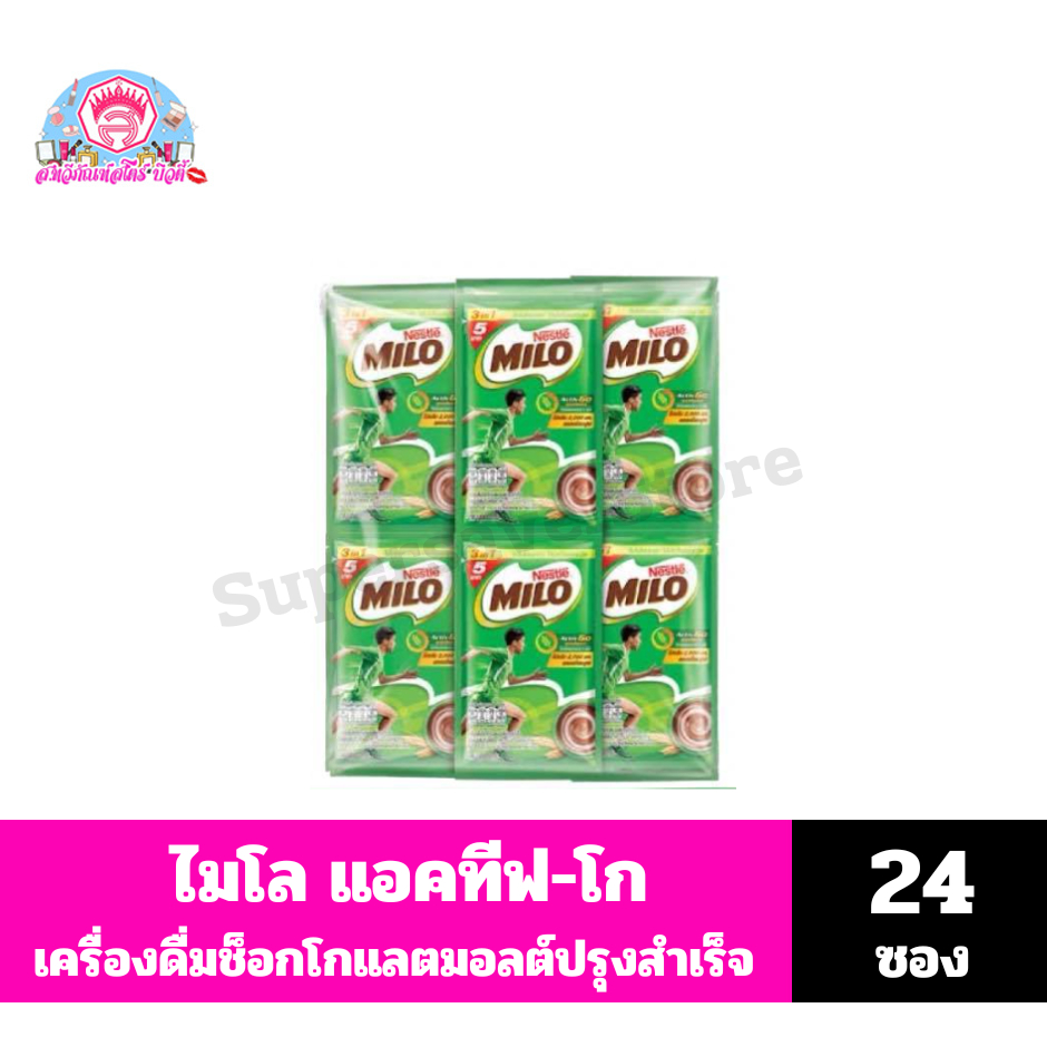 ไมโล แอคทีฟ-โก เครื่องดื่มช็อกโกแลตมอลต์สำเร็จรูป สูตรโปรตีนถั่วเหลือง ขนาด 18 กรัมx24ซอง**แบบแผง**