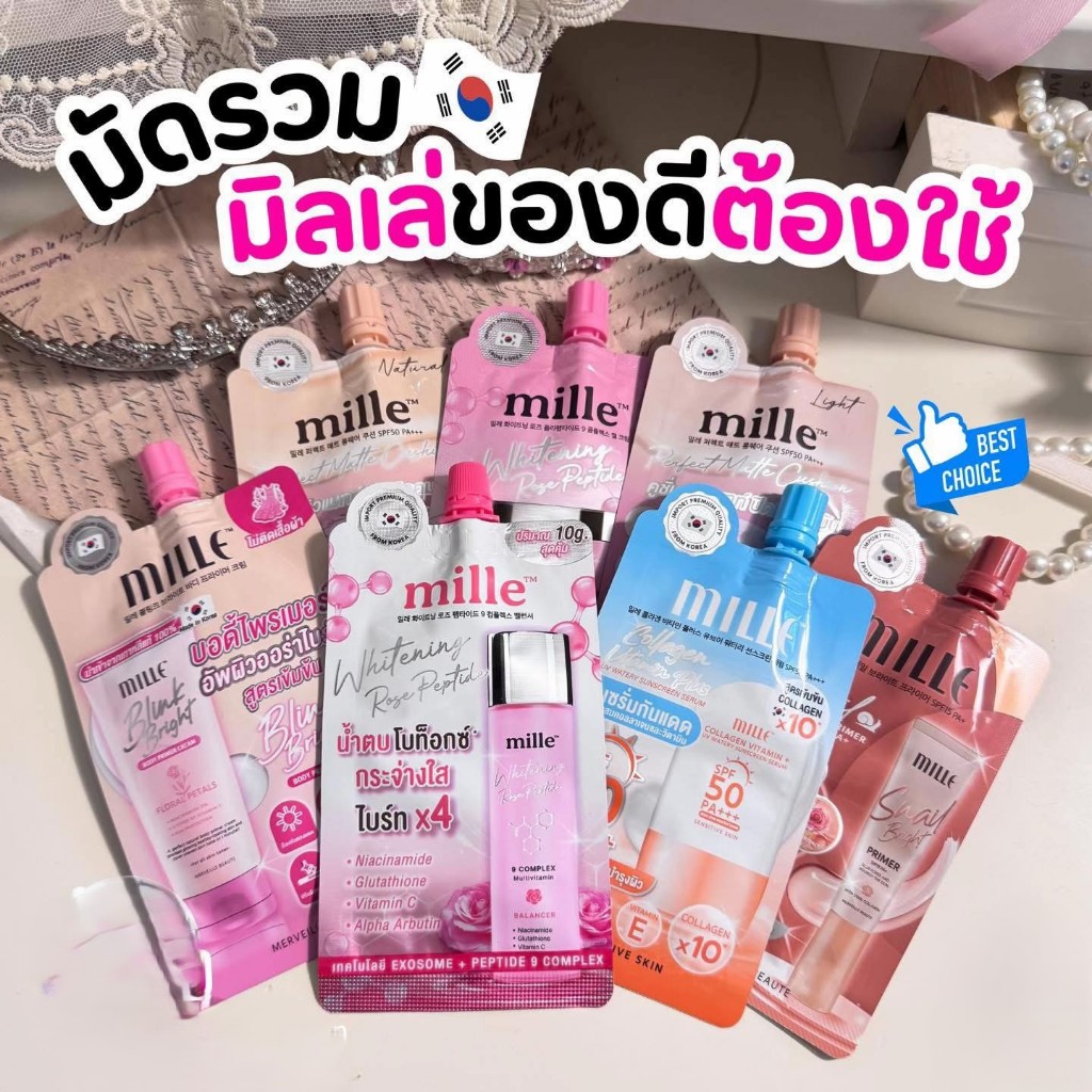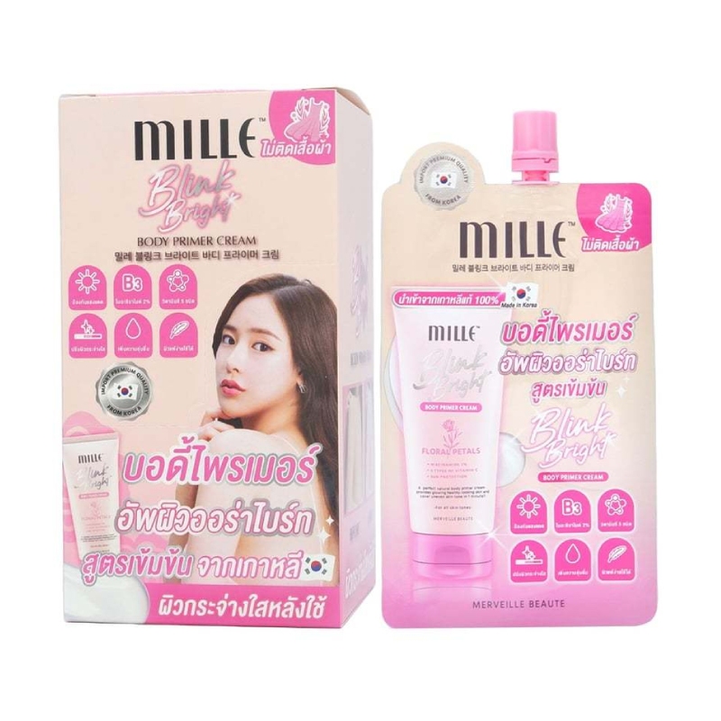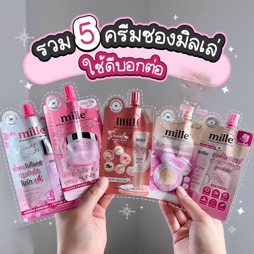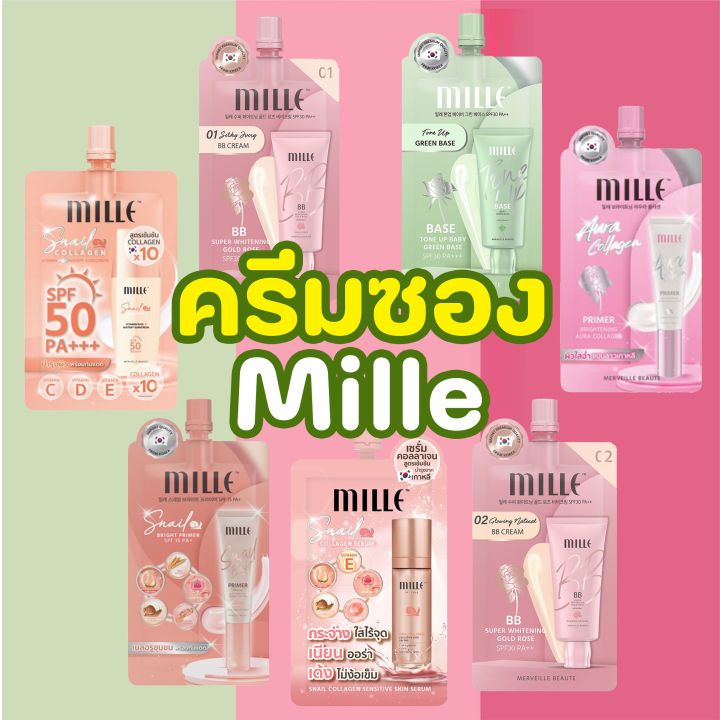 MILLE BRIGHTENING AURA COLLAGEN แบบซอง ออร่าไพร์เมอร์ เปล่งประกาย แวววาวอย่างมีออร่า