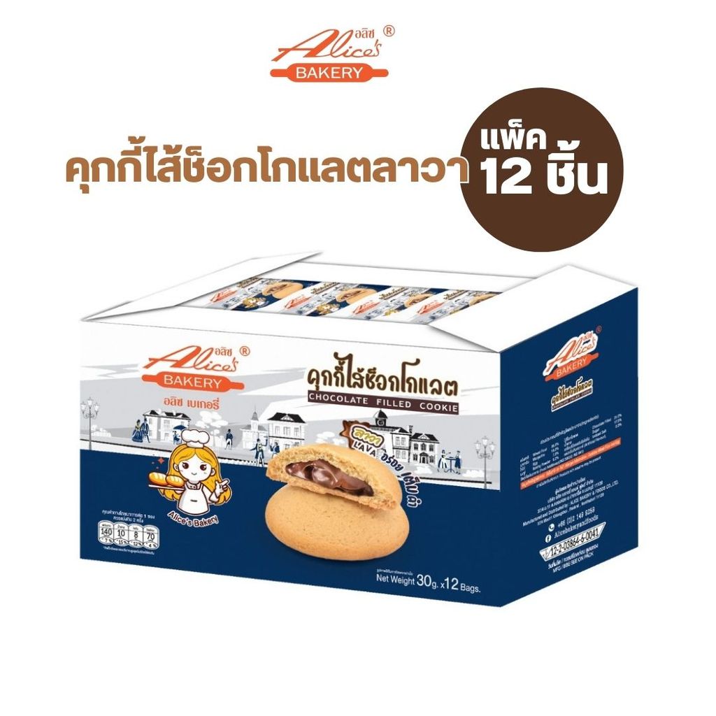 Alice's Bakery อลิซ เบเกอรี่ คุ้กกี้ช็อกโกแลตลาวา สินค้าขายดี รีวิวแน่น 30g x 12 ซอง