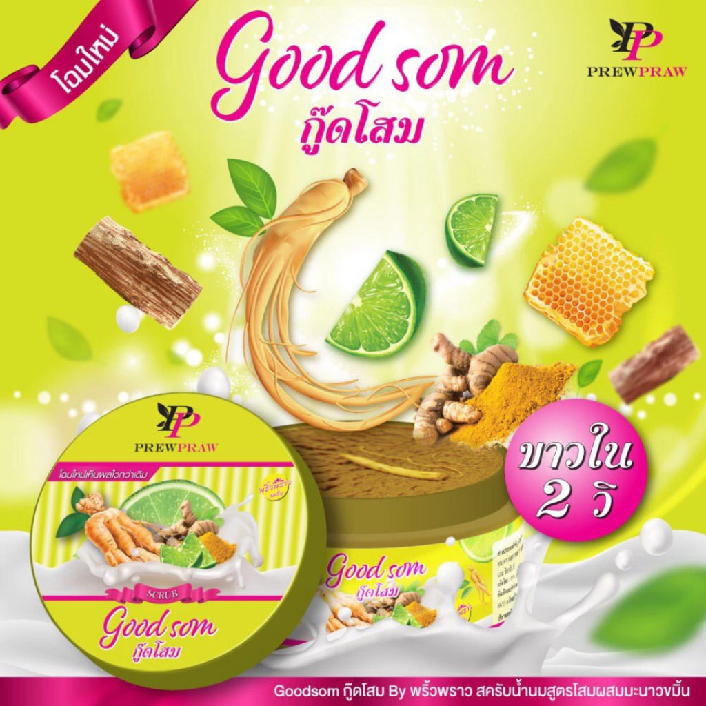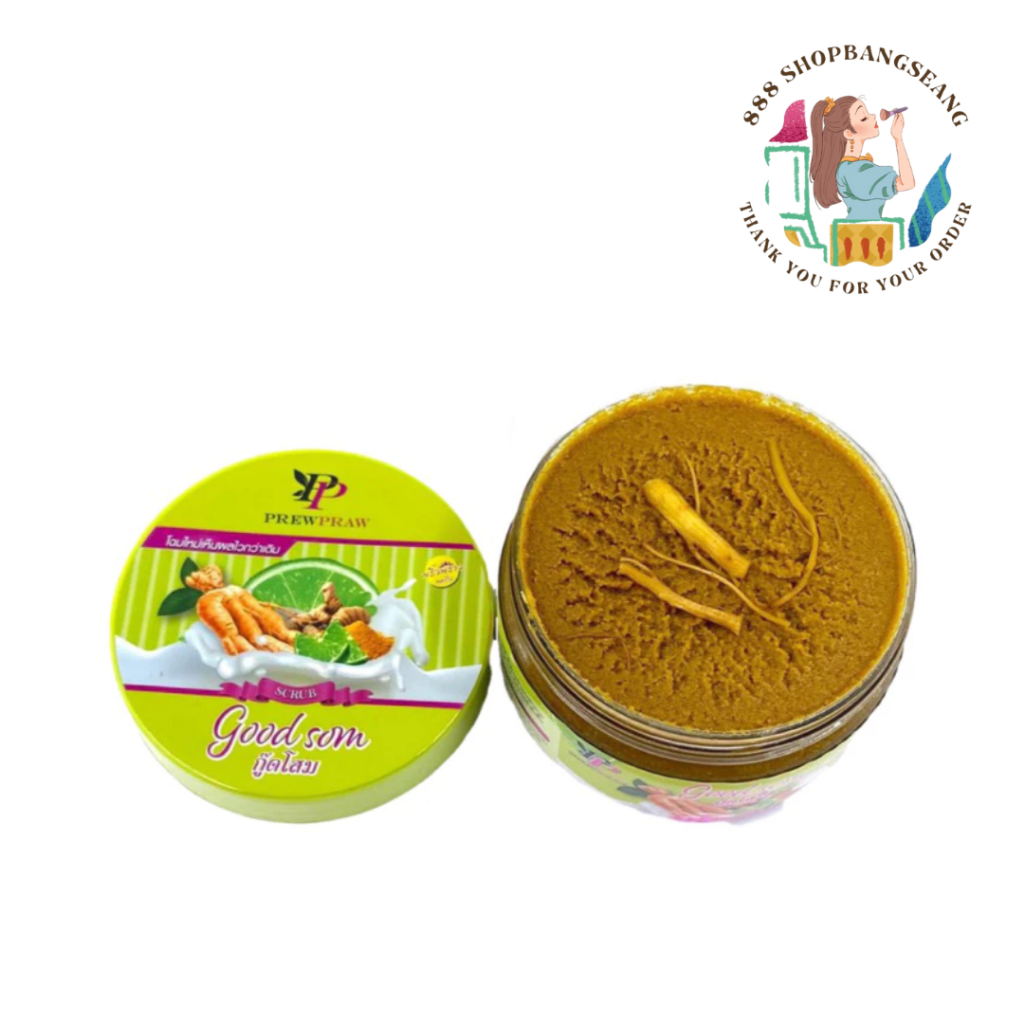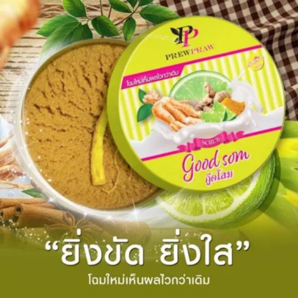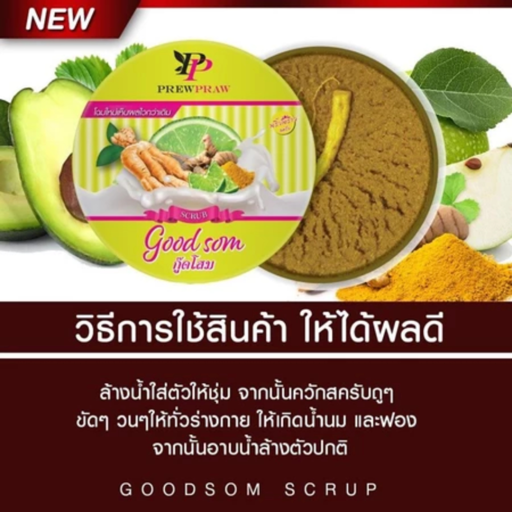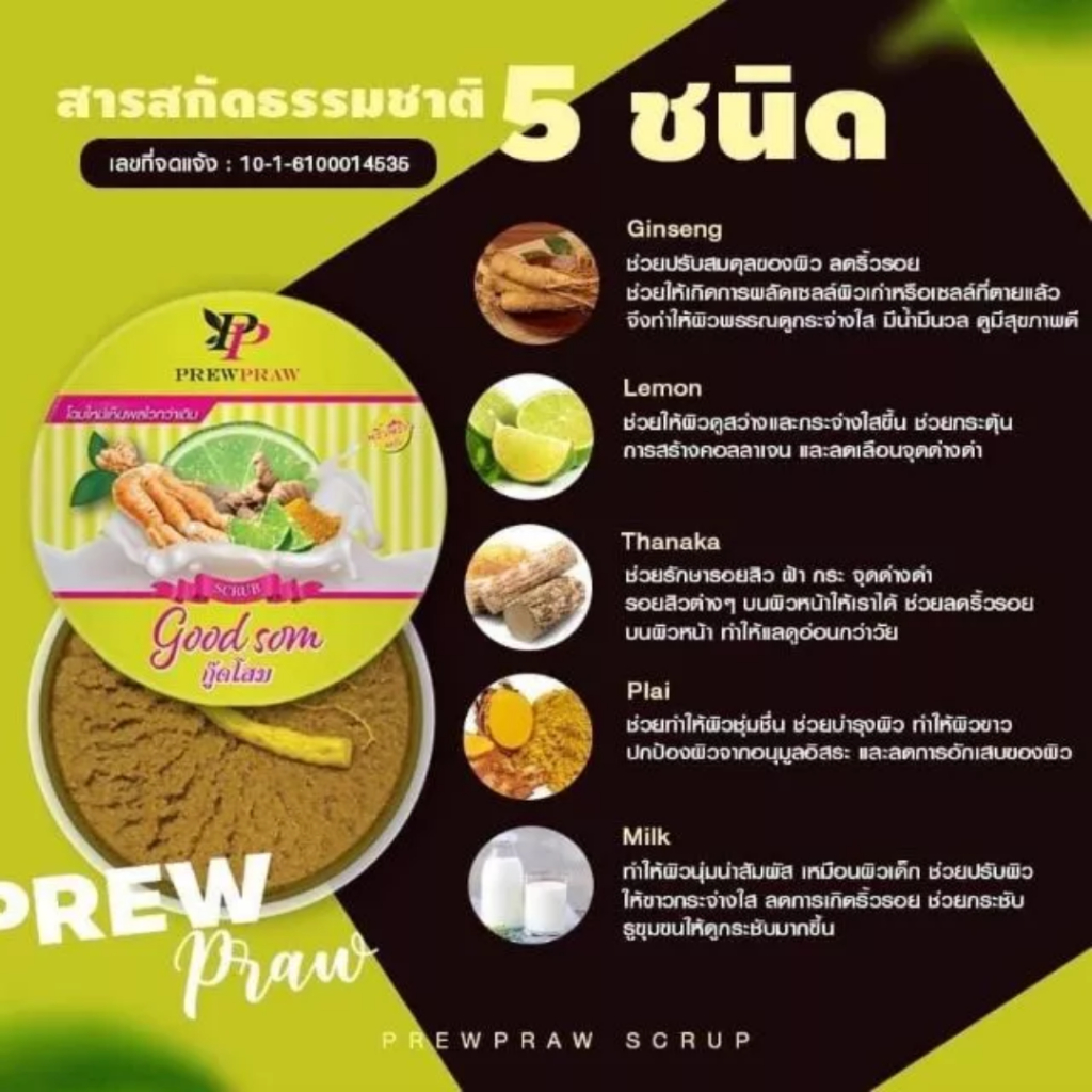 สครับ พริ้วพราว prewpraw สครับกู๊ดโสม เนื้อเนียน นุ่มไม่บาดผิว เน้นผิวขาว 400 g