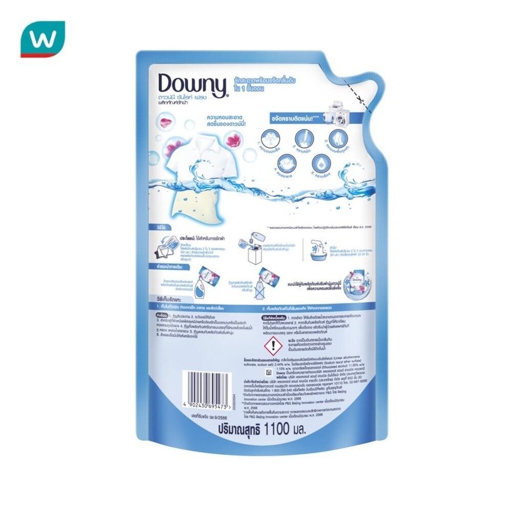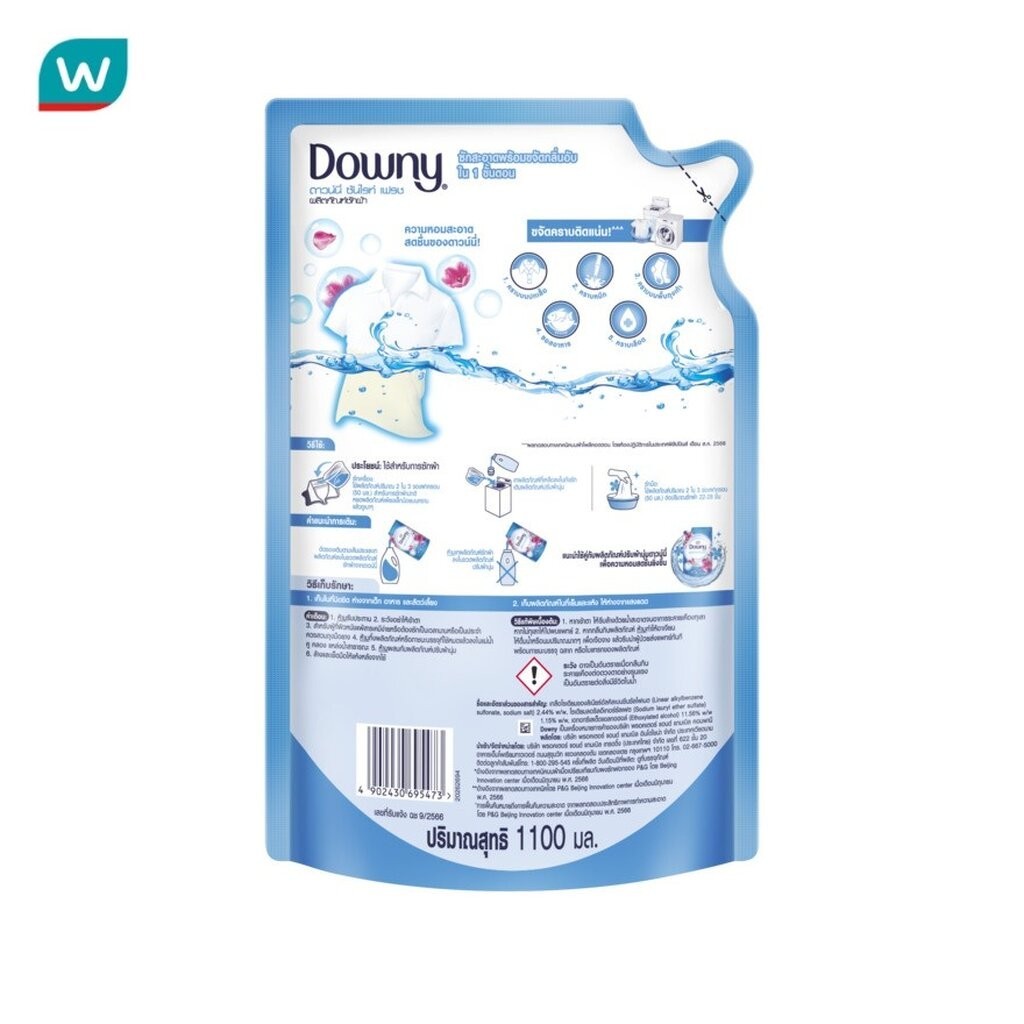 Downy ดาวน์นี่ ผลิตภัณฑ์ซักผ้า สูตรเข้มข้น ซันไรท์ เฟรช คลีน ถุงเติม 1100 มล.