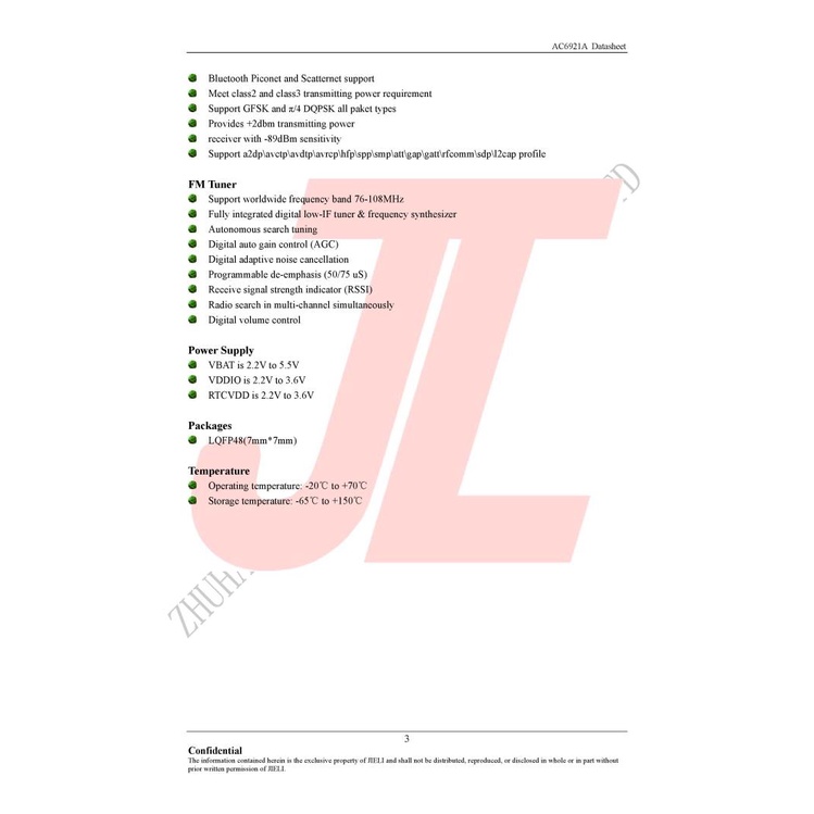 Original 10pcs/Lot Jieli Bluetooth Chip AC6921A LFQP48 JL IC Chipset Integrated Circuit 32bit RISC BT 5.0 BLE Compone