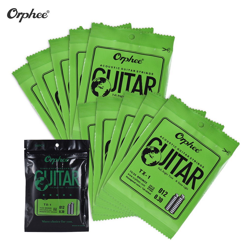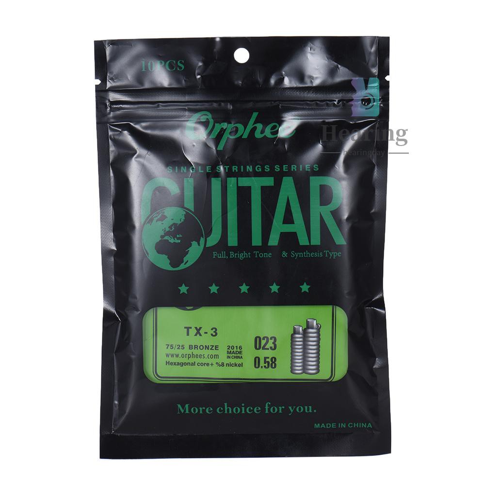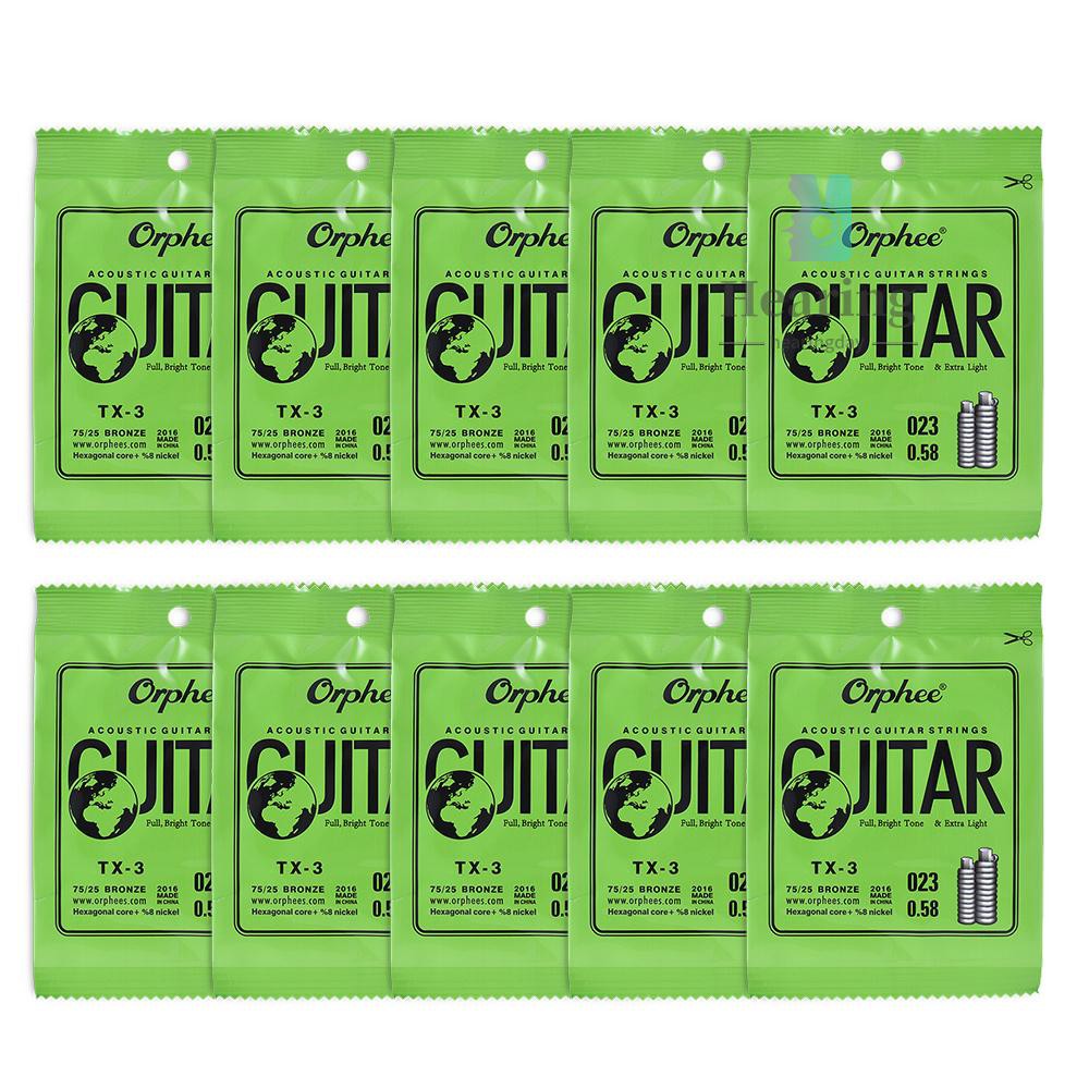 Orphee TX-3 Single String Replacement for Acoustic Folk Guitar 3rd G-String (.023) 10-Pack High-carbon Steel Core 75/25 Phosphor Bronze Extra Light Tension -Musical