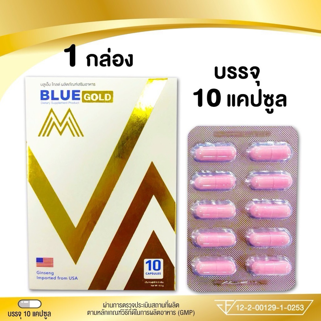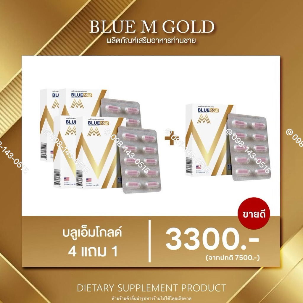 [พร้อมส่ง] Blue M Gold ( บลูเอ็มโกลด์ 4 แถม 1 กล่อง) ผลิตภัณฑ์เสริมอาหารชาย (ขนาด10แคปซูล x 1 กล่อง)