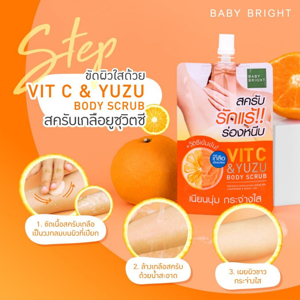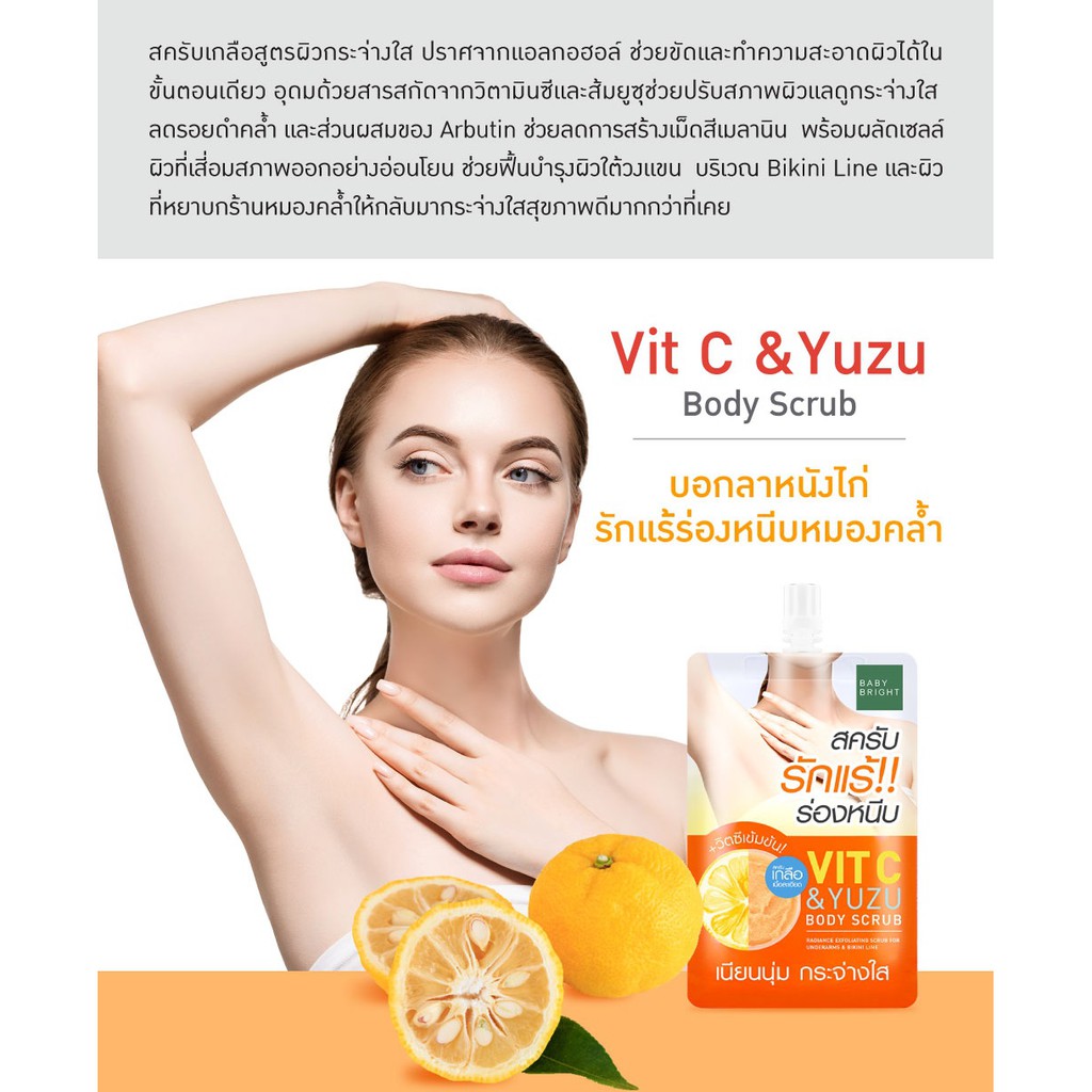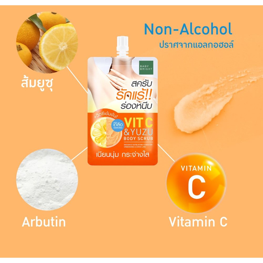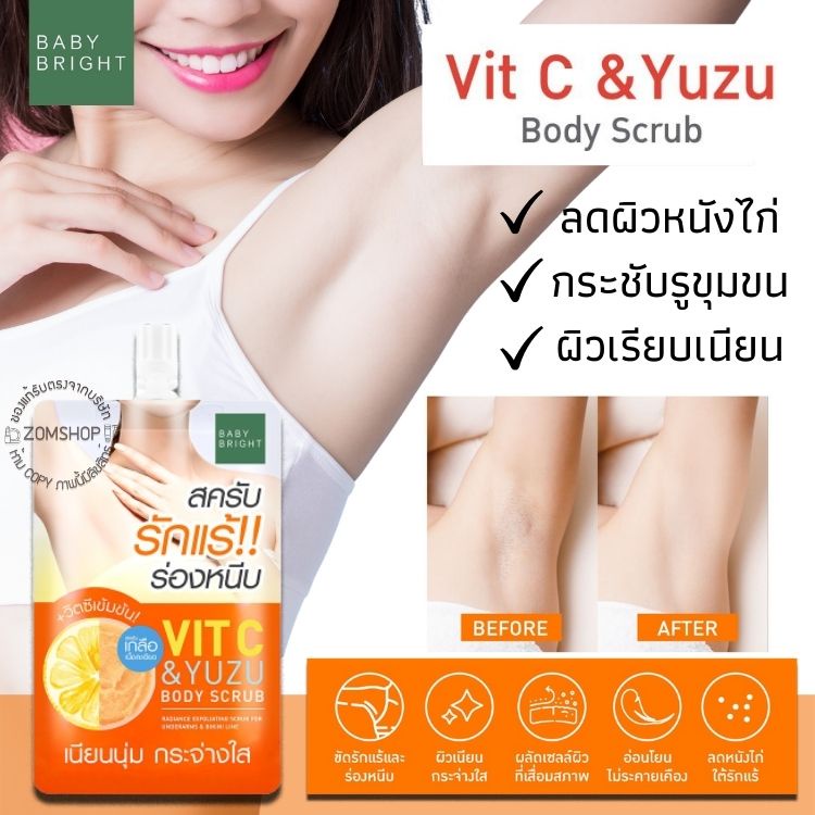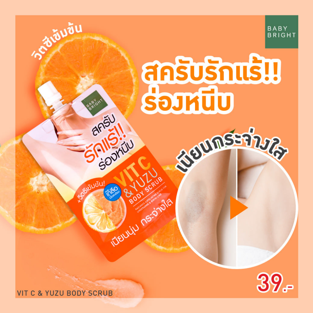 【1ชิ้น】สครับรักแร้ & ร่องหนีบ【วิตซี】อ่อนโยน Vit C & Yuzu Body Scrub 40g. Baby Bright