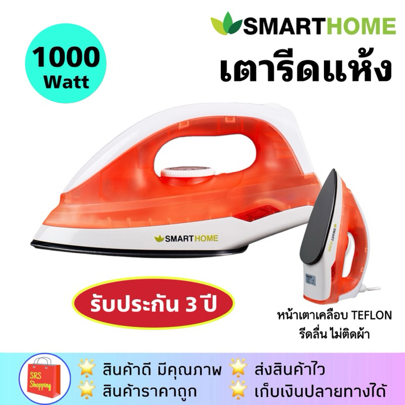 💥ส่งฟรี💥SMARTHOME รุ่น SDIR-009 เตารีดแห้ง เตารีดไฟฟ้า เคลือบ TEFLON