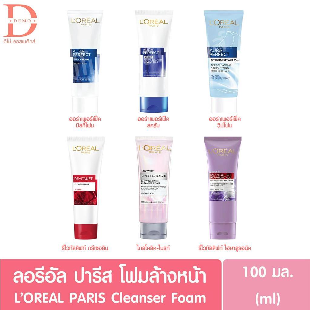 ลอรีอัล โฟมล้างหน้า ผลิตภัณฑ์ทำความสะอาดใบหน้า 100มลL'Oreal Facial Faom Cleanser Revitalift,Aura Perfect,Glycolic-Bright