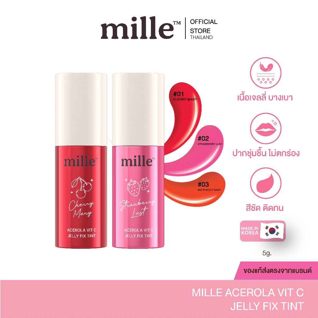 [1 แถม 1] MILLE ACEROLA VIT C JELLY FIX TINT ลิปเจลลี่ทิ้นท์ สีชัด ติดทนริมฝีปาก