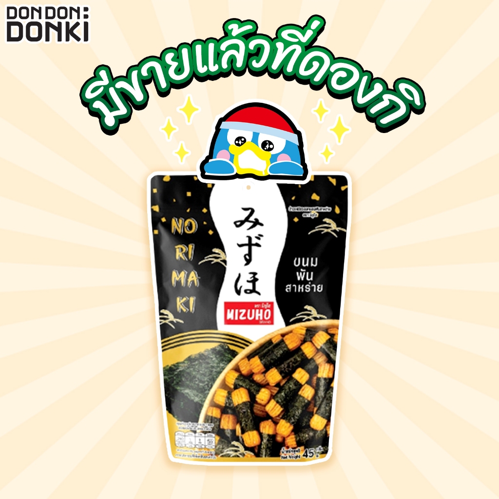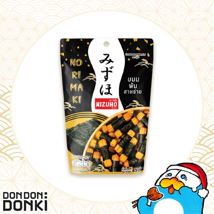 Mizuho Norimaki มิซูโฮ ขนมข้าวอบกรอบพันสาหร่าย (ซองสีดำ) น้ำหนักสุทธิ 45 กรัม