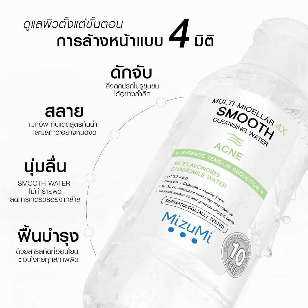 [แพ็คคู่] MizuMi Multi-Micellar 4X Smooth Cleansing Water Acne 500ml ไมเซล่า คลีนซิ่งล้างเมกอัพ สำหรับผิวเป็นสิว