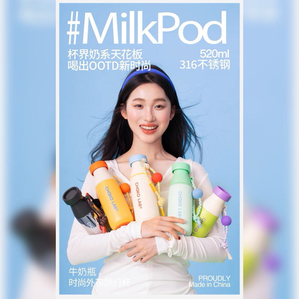 รุ่นใหม่ พร้อมส่งจากไทย Chako lab แก้วเก็บความเย็นขนาด 520 ml Milkpod แถมแปรงล้างหลอดทุกคำสั่งซื้อ