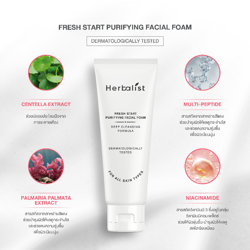 Herbalist Fresh Start Purifying Facial Foam เฮอบาลิสท์ โฟมทำความสะอาดผิวหน้า สูตรอ่อนโยน 100 กรัม