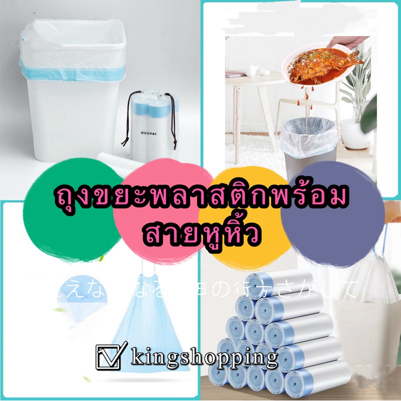 kingshopping LJD05(ร้านไทย)ถุงขยะพลาสติกพร้อมสายหูหิ้ว ขนาด ก.45 * ย.50 Cm. 1ม้วนมี15ถุง (ผลิตภัณฑ์ดูแลบ้าน )