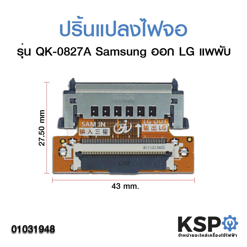 ปริ้นแปลงไฟจอ ซ็อตเก็ตแปลงสายแพเข้าจอ Samsung ออก LG (รุ่น QK-0827A แพพับ) อะไหล่ทีวี