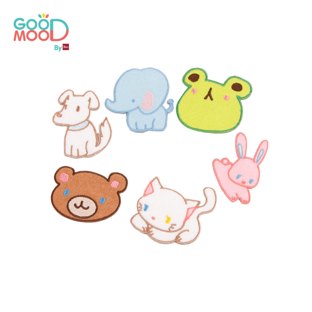 Good Mood by bsc เสื้อยืดคอกลมแขนยาวถอดแขน สีเบจ + PATCHES ลายสัตว์ 6 ชิ้น สำหรับเด็กอายุ 8-9 ปี ผ้าคอตตอน