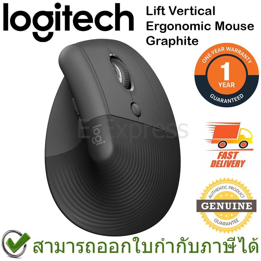 Logitech Lift Vertical Ergonomic Mouse (Graphite) เม้าส์แนวตั้งสีดำ ของแท้ ประกันศูนย์ไทย 1ปี