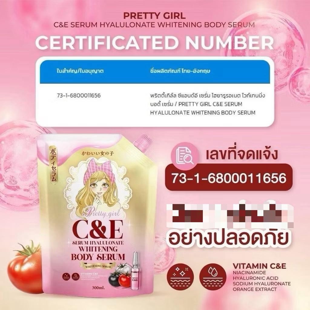 โปร 3 ถุง เซรั่ม Pretty Girl C&E Gluta Body Serum 3 ถุง ขนาด 300ml. เซรั่มาผิวกาย