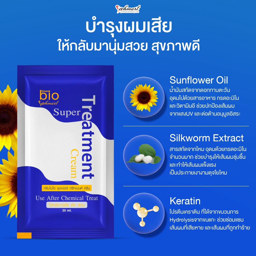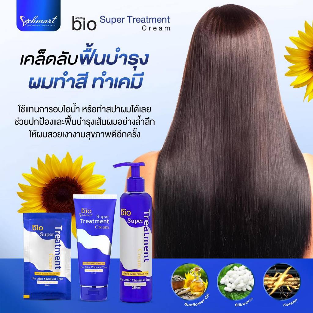 (หลอด/ขวดปั๊ม) Green Bio Super Treatment Cream 150ml / 250ml t ทรีทเม้นท์กรีนไบโอ ฟื้นฟูผมเสียให้กลับมาดูสุขภาพดี เงางาม