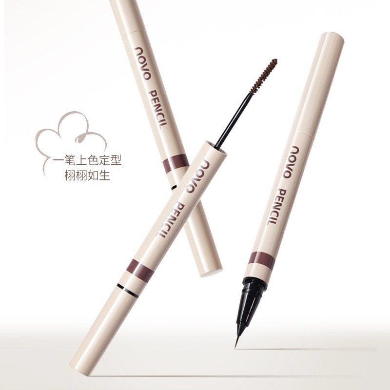 6065 (ใหม่/แท้) NOVO EYEBROW PENCIL 2 In 1 มาสคาร่าคิ้ว อายไลเนอร์ กันน้ำ ติดทนนาน