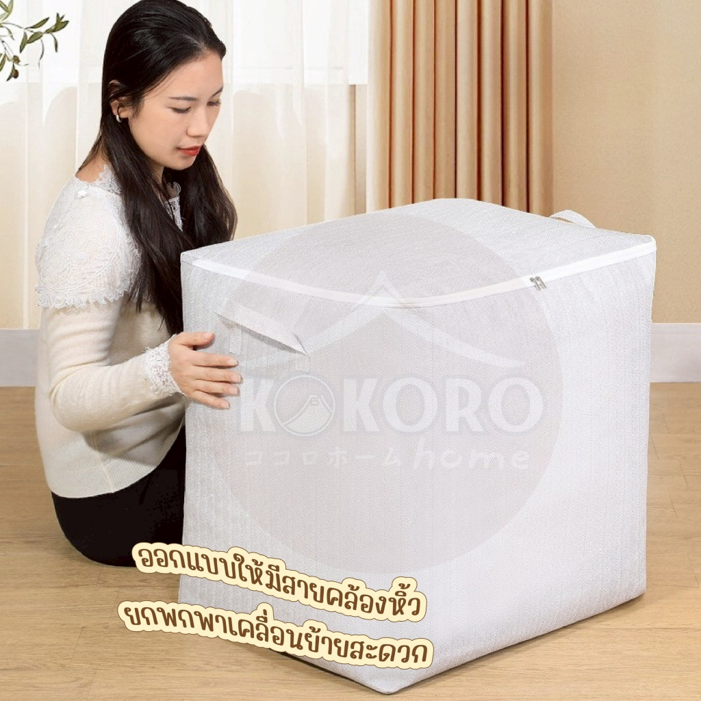 [ส่งด่วน 2 ชม.] Kokoro Home ถุงผ้าใสเสื้อผ้า ถุงเก็บผ้านวมหรือผ้าห่ม ขนาด 110-140L มีซิปรูดปิด ง่ายต่อการเปิด-ปิด MB045