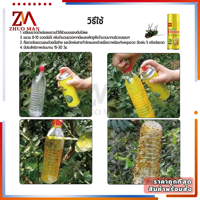 สเปย์สารล่อแมลงวันทอง กาวดักแมลง ดักแมลงวันทองได้ผลเร็ว ดักจับด้วยวิธีทางกายภาพ ไม่เป็นอันตรายต่อผลไม้และผัก กาวดักแมลง