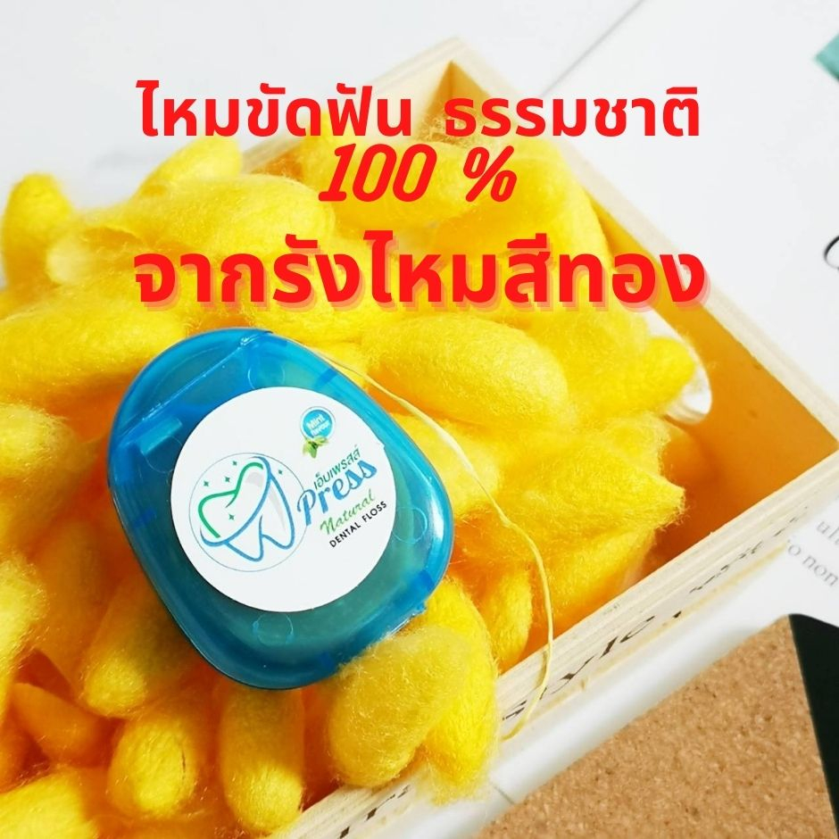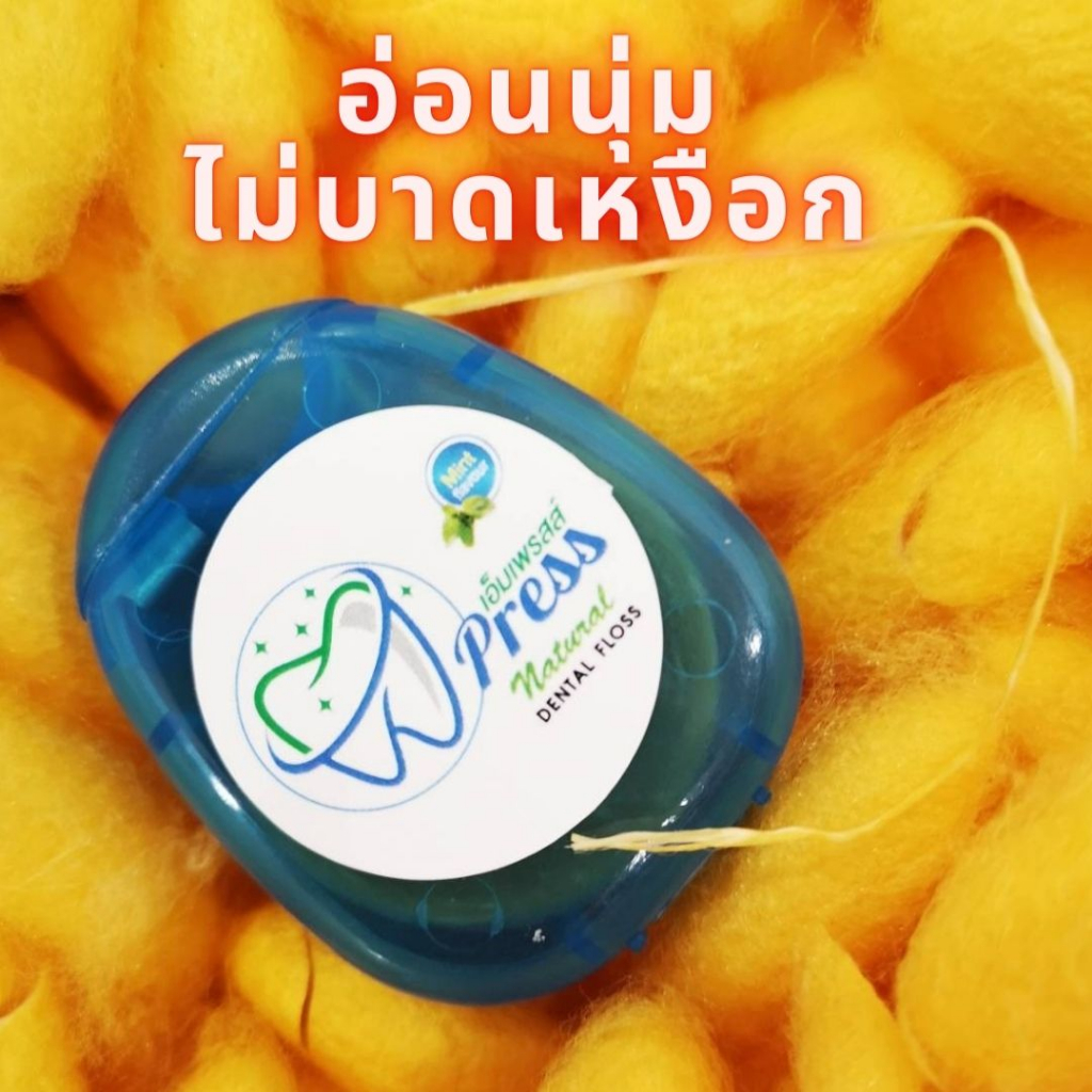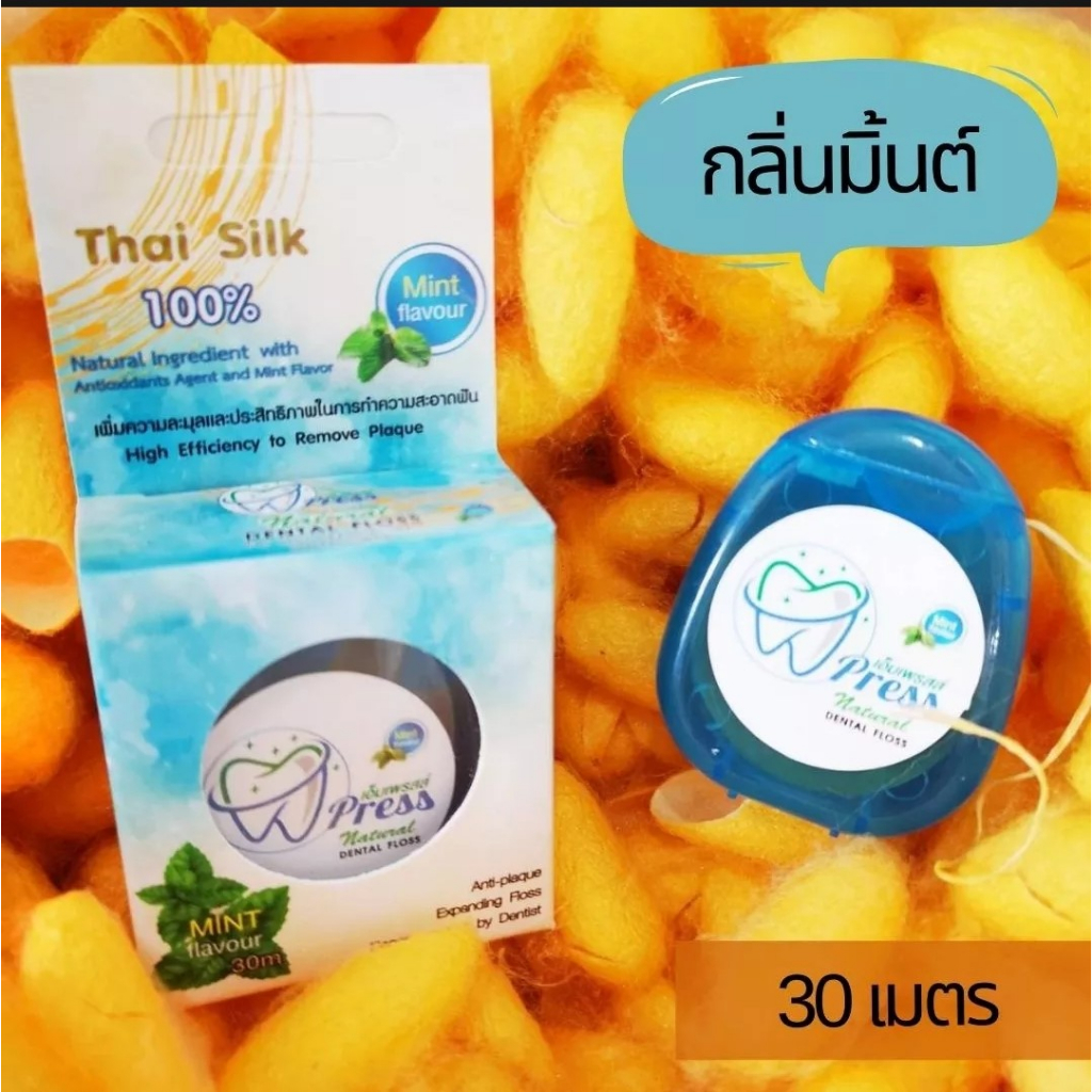ไหมขัดฟัน M Press Dental Floss ไหมขัดฟันธรรมชาติ 100 % กลิ่นมิ้นต์ ทำจากรังไหม ลดหินปูน ไหมนุ่ม ไม่บาดเหงือก ยาว 30 เมตร
