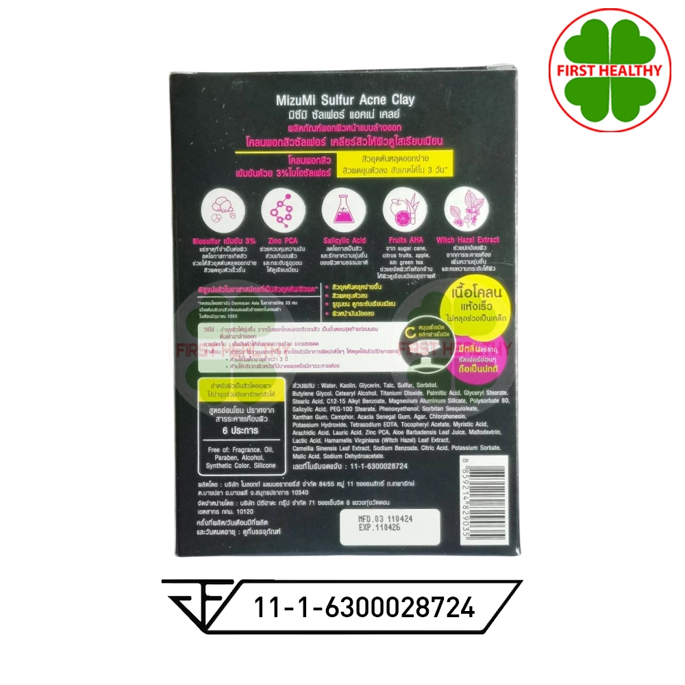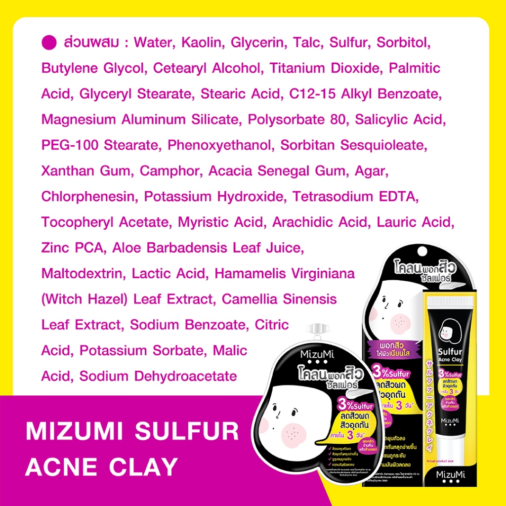 MizuMi Sulfur Acne Clay (กล่องดำ) (6g x 6 ซอง)