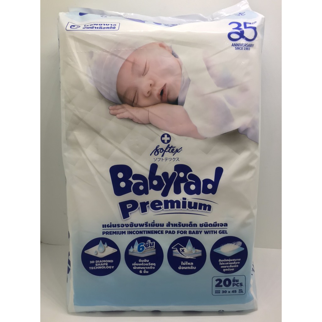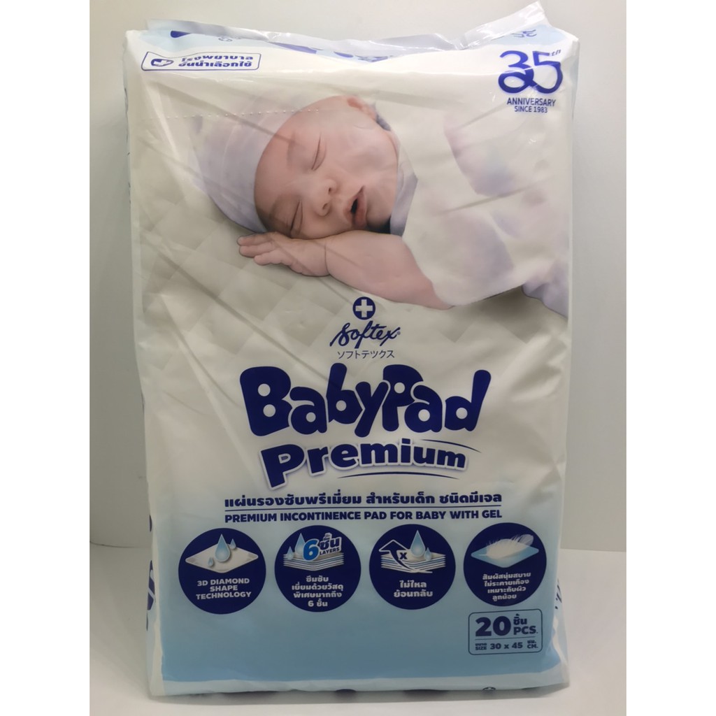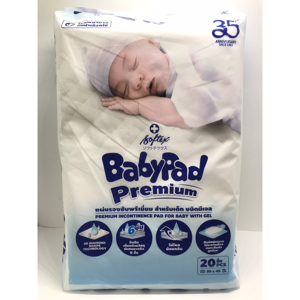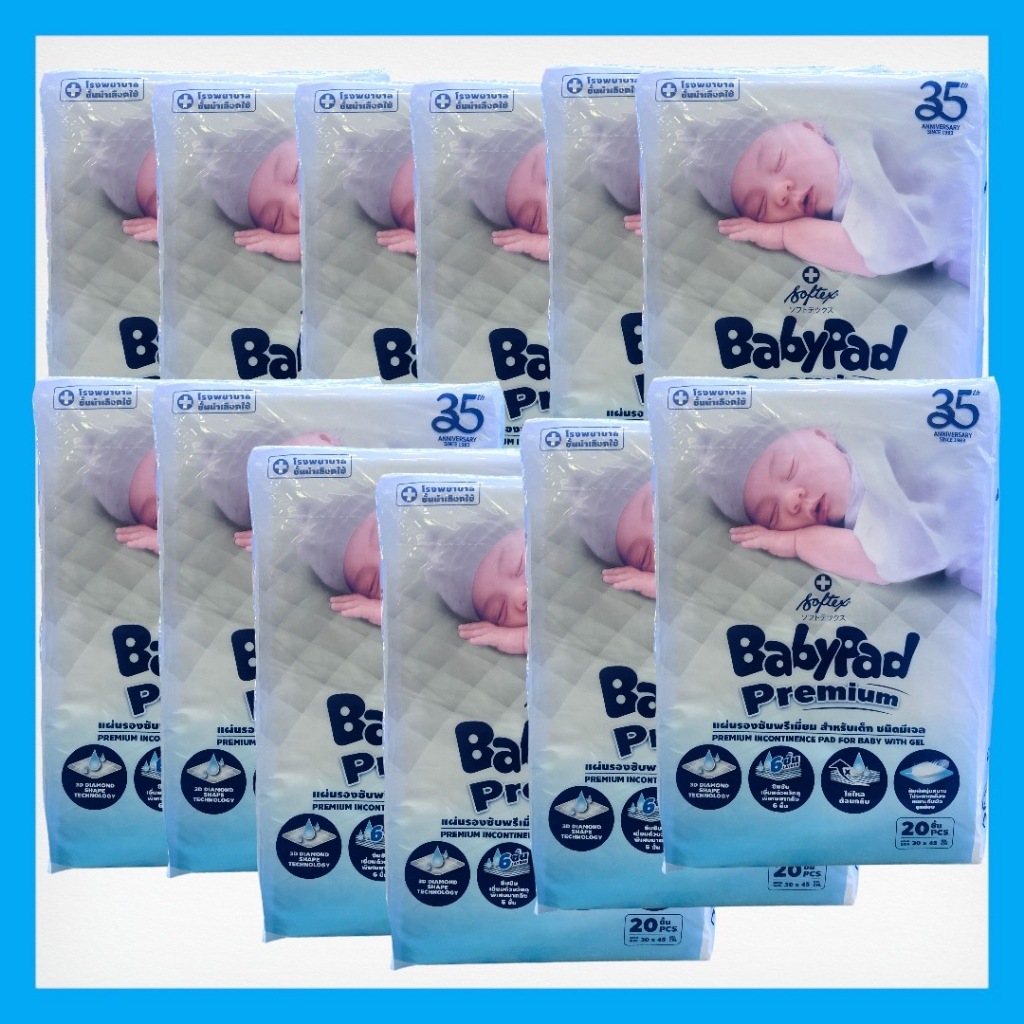 ยกลัง 12 ห่อ SOFTEX BABYPAD แผ่นรองซับสำหรับเด็ก ซ้อฟเท็กซ์ เบบี้แพค(1ห่อบบรรจุ20แผ่น)รวม 240แผ่น