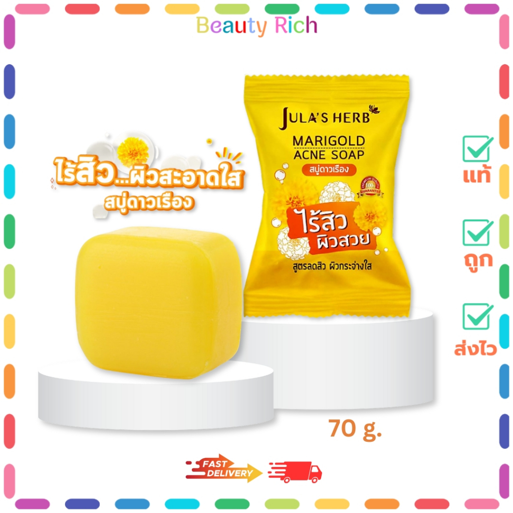 (1 ก้อน) Jula's Herb จุฬาเฮิร์บ สบู่ดาวเรืองลดสิว (ปริมาณ 70 กรัม)