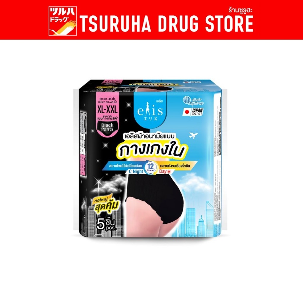 เอลิส ผ้าอนามัยแบบกางเกงสีดำ ไซส์เอ็กซ์แอล-เอ็กซ์เอ็กซ์แอล 5ชิ้น / Elis Pants Black series size XL-XXL 5P