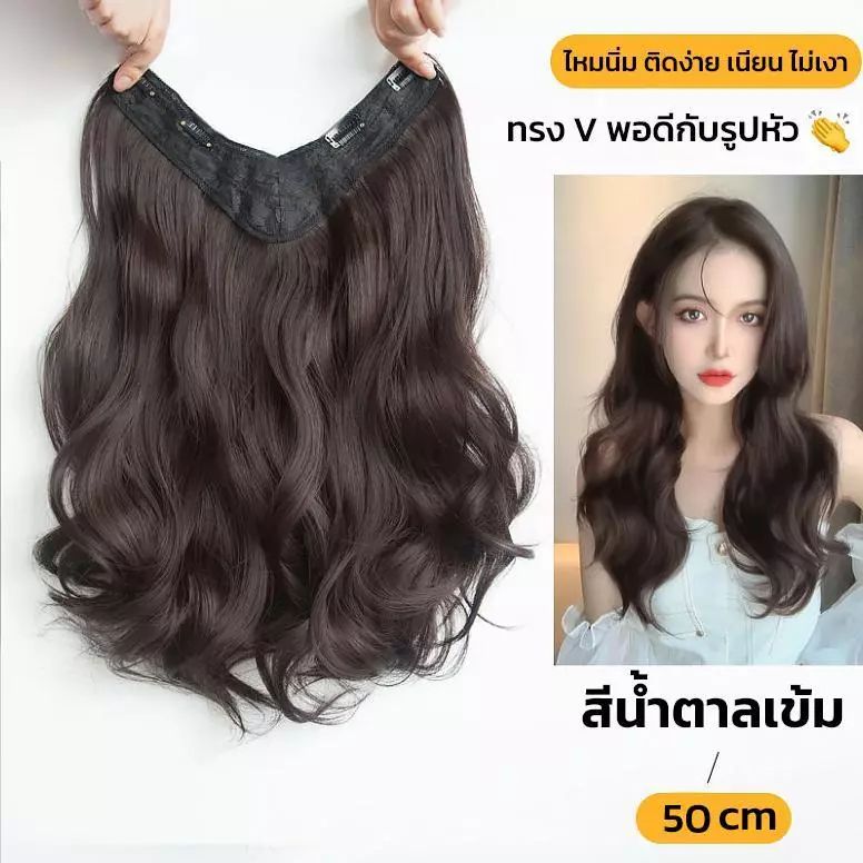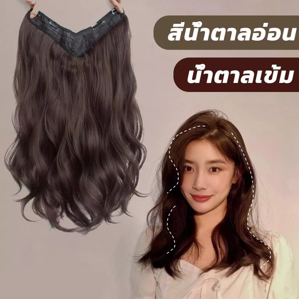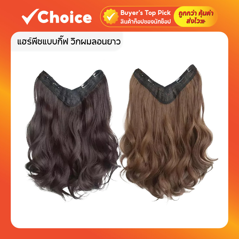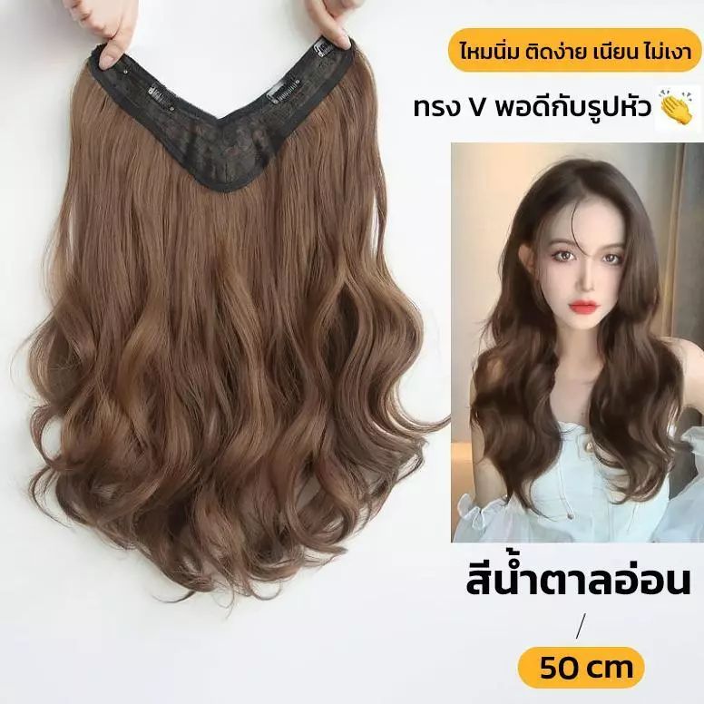 แฮร์พีชแบบกิ๊ฟ วิกผมลอนยาว V-Shape ติดง่าย เข้ารูปกับทรงศีรษะ 50 ซม. สีน้ำตาลอ่อน/น้ำตาลเข้ม