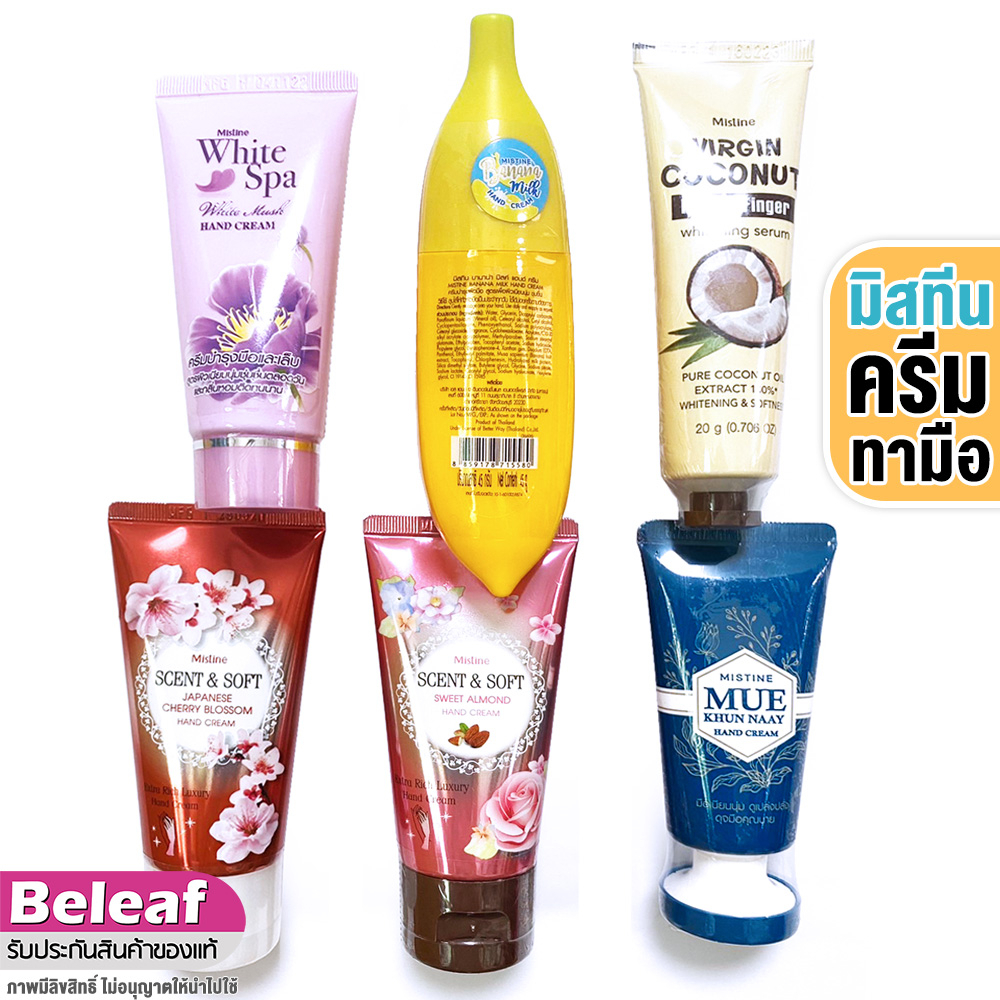 มิสทีน ครีมทามือ ครีมบํารุงมือ เล็บ นุ่ม เนียน Mistine Banana Milk / White Spa / Scent Soft / Coconut / Mue Khun Naay Ha