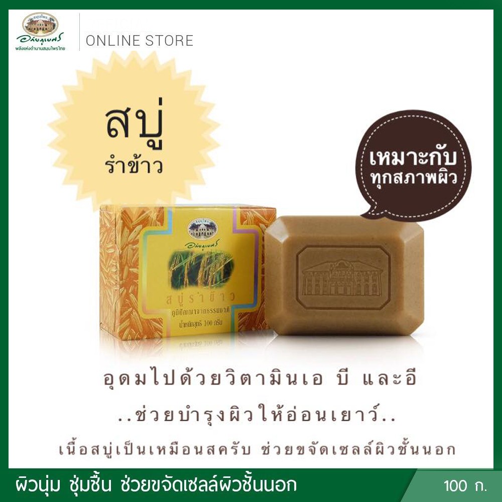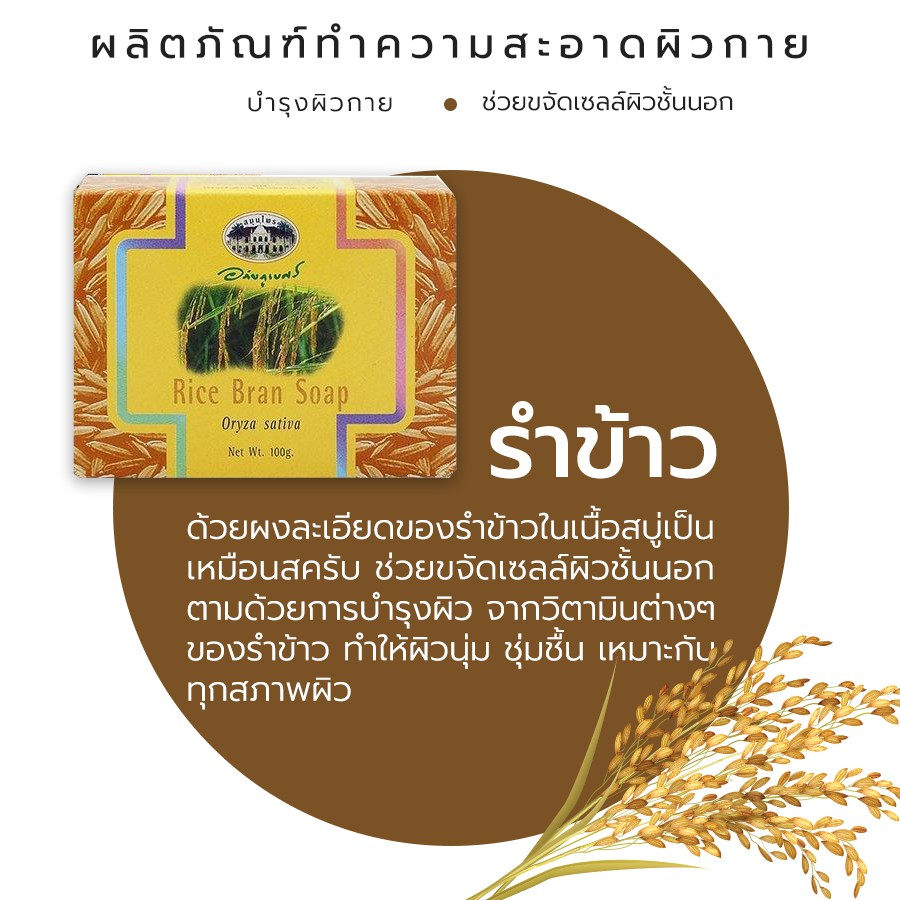 สบู่รำข้าว💛อภัยภูเบศร ✅(ผลิตใหม่ล่าสุด)✅ขนาด 100 กรัม