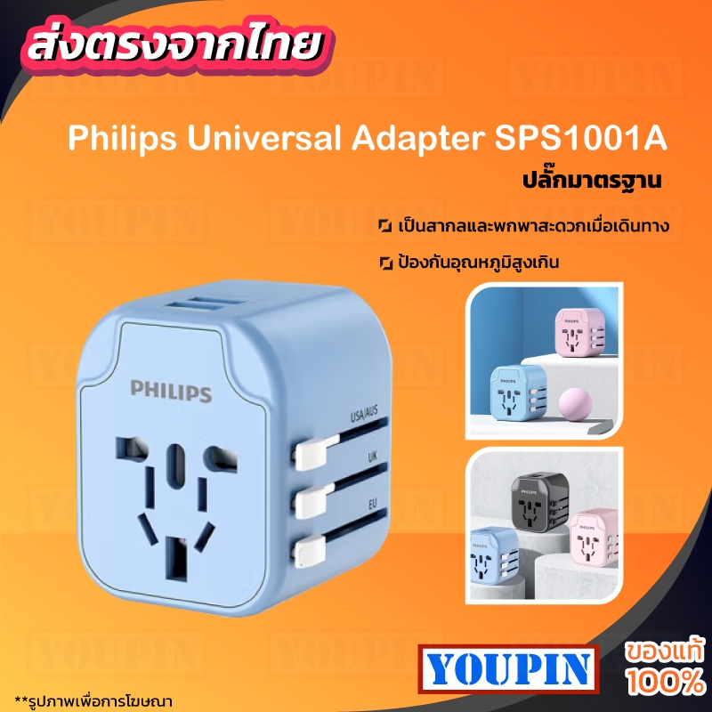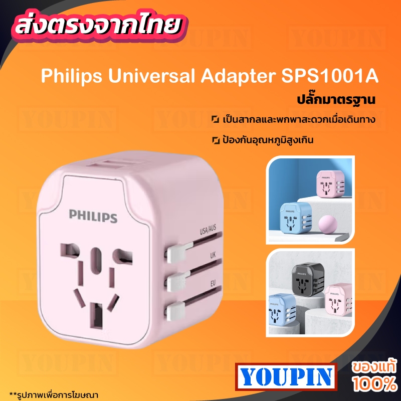 Philips Universal Adapter SPS1001A หัวแปลงปลั๊กไฟ ปลั๊กต่อไฟฟ้า ปลั๊กพ่วง