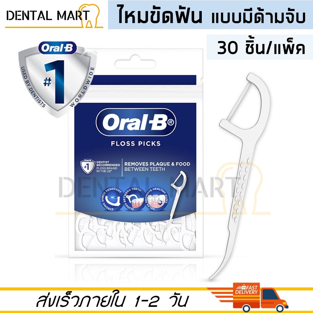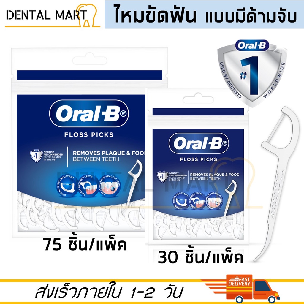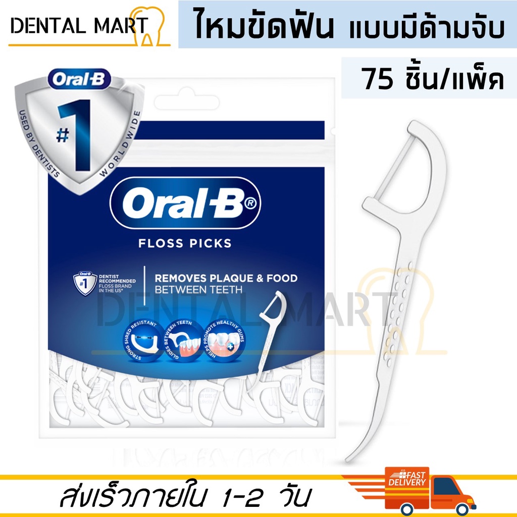 Oral-B Floss Picks ออรัลบี ไหมขัดฟัน แบบมีด้ามจับ แพ็ค 30 / 75 ชิ้น Oral-B Floss Pick